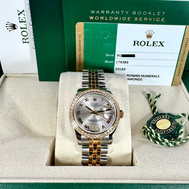 The dazzling Rolex model 178383 arrives as a full set including all the commodities associated with a high-end Rolex purchase. This includes having the original Rolex packing, and all the documents certifying its authenticity.