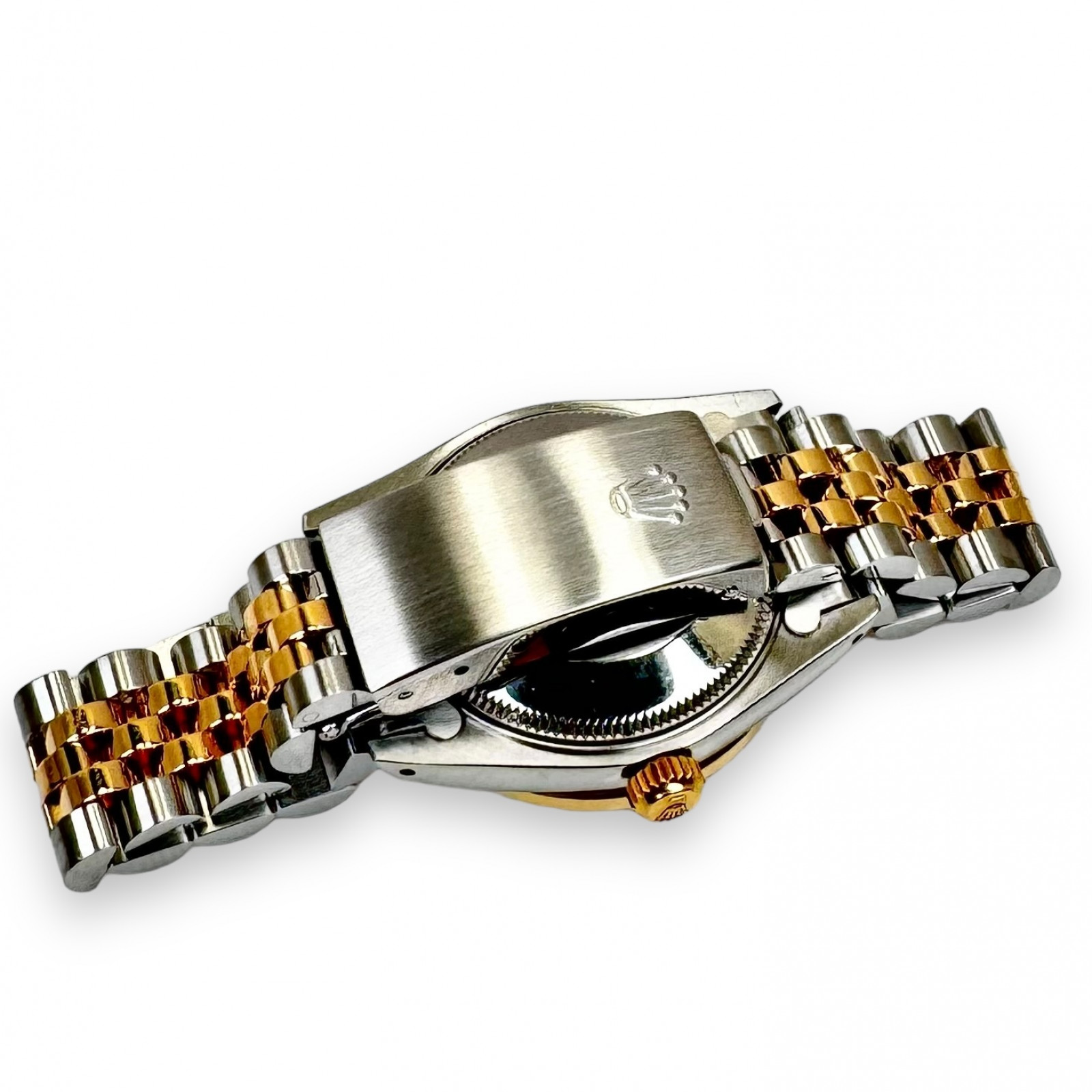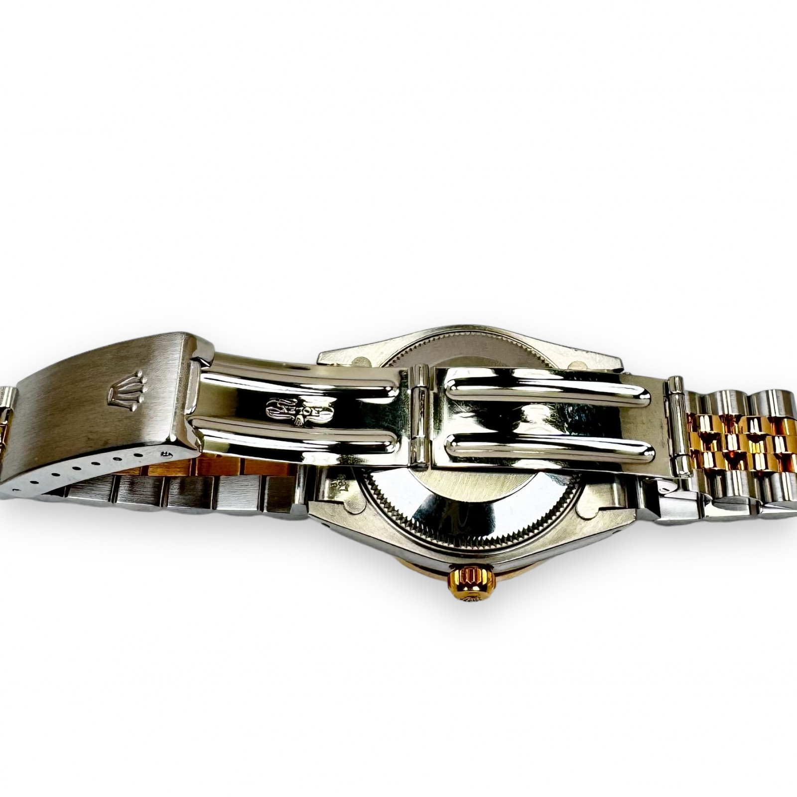 Enhancing the charm of this spectacular wristwatch is its exquisitely designed Jubilee Stainless steel and 18 KT Gold bracelet, marked with the reference 62523. The harmonious blend of these superior materials accentuates the Rolex Datejust's overall elegance, leaving an indelible mark of the unparalleled craftsmanship that the Rolex brand is universally renowned for.