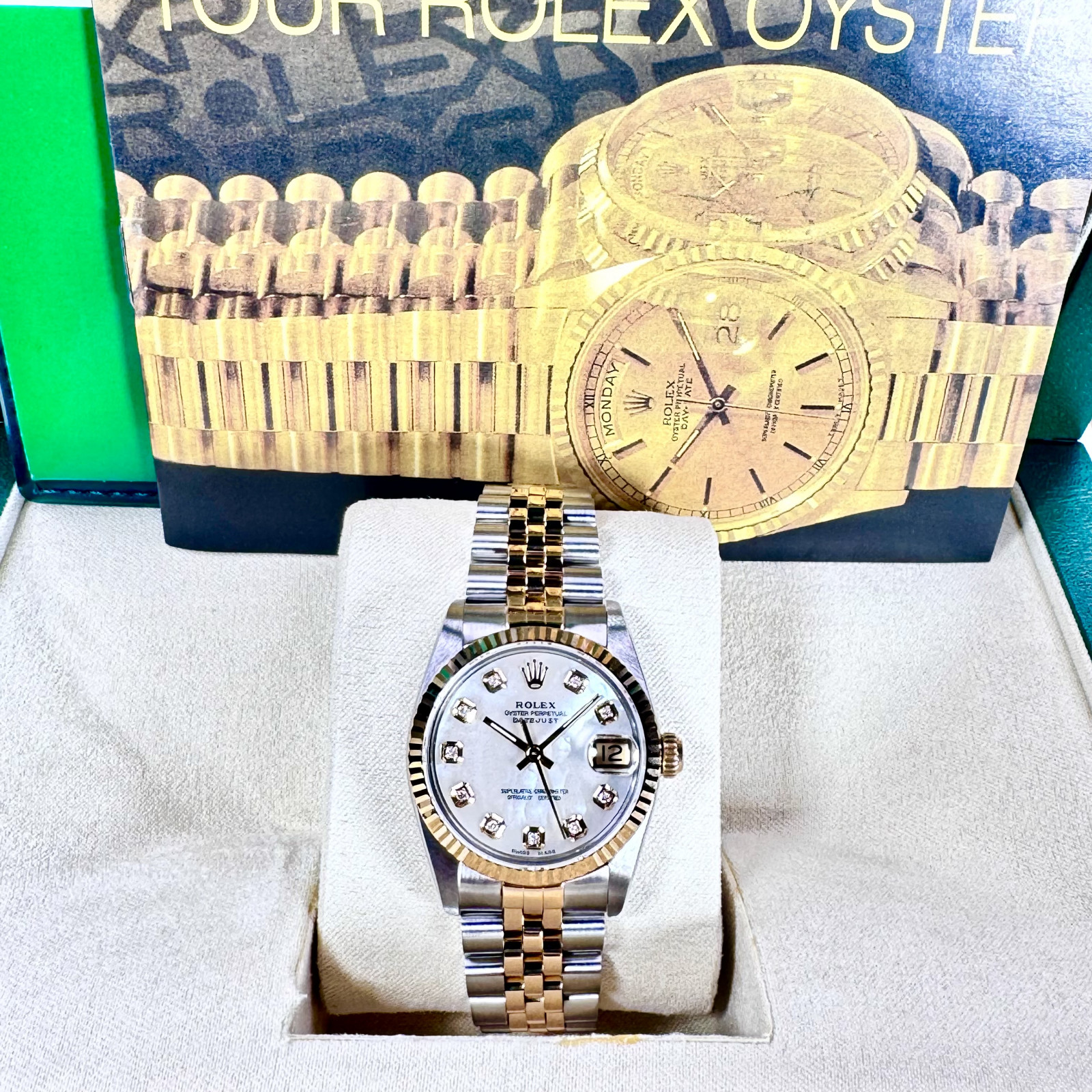 | Dial: | Mother Of Pearl, Diamonds Markers, Custom |
