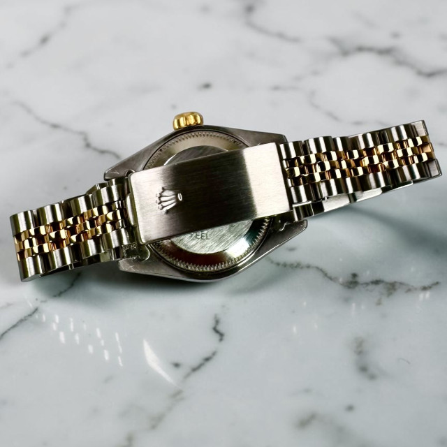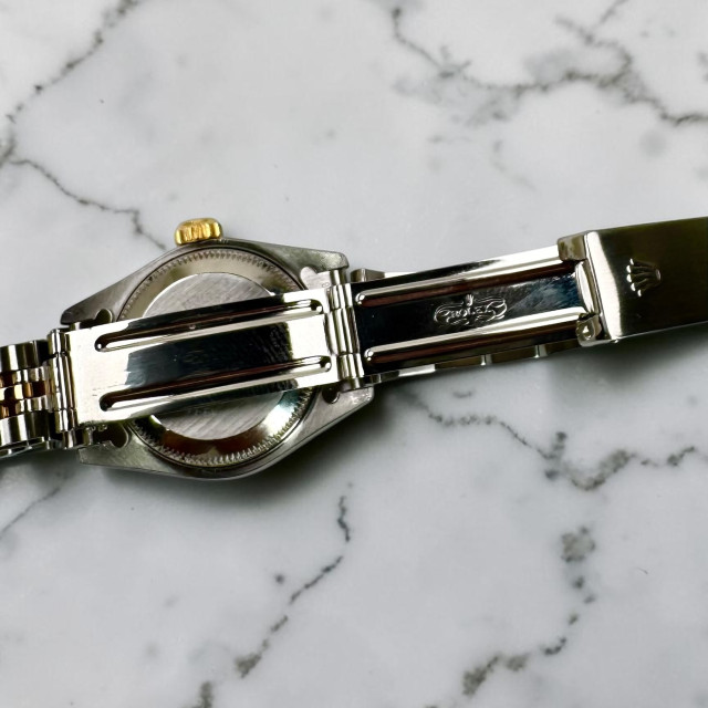 Setting this particular model of Rolex Datejust, the 69173, further apart is its magnificent blend of a Jubilee stainless steel and 18 KT Gold bracelet. Known for its enduring durability and unparalleled comfort, this signature bracelet, adorned with the reference number 62523, bolsters its adaptability for a vast range of occasions. Easily transitioning from formal boardroom meetings to relaxed beach outings – this bracelet adds a touch of grace and opulence to every event.