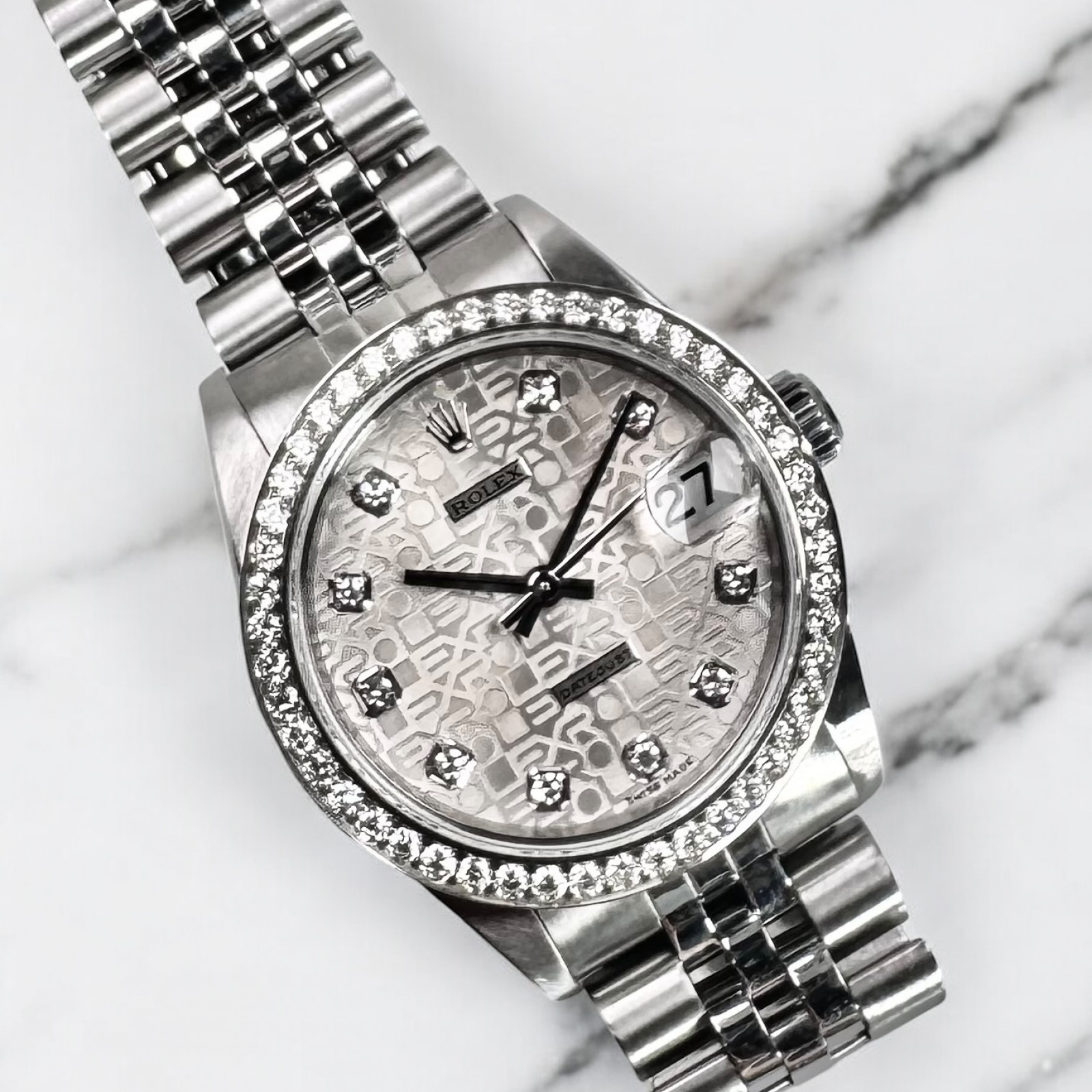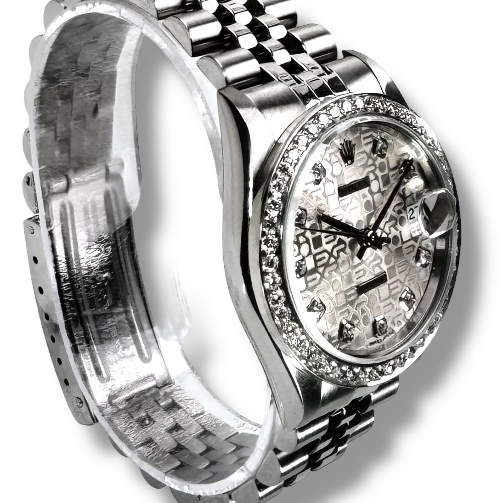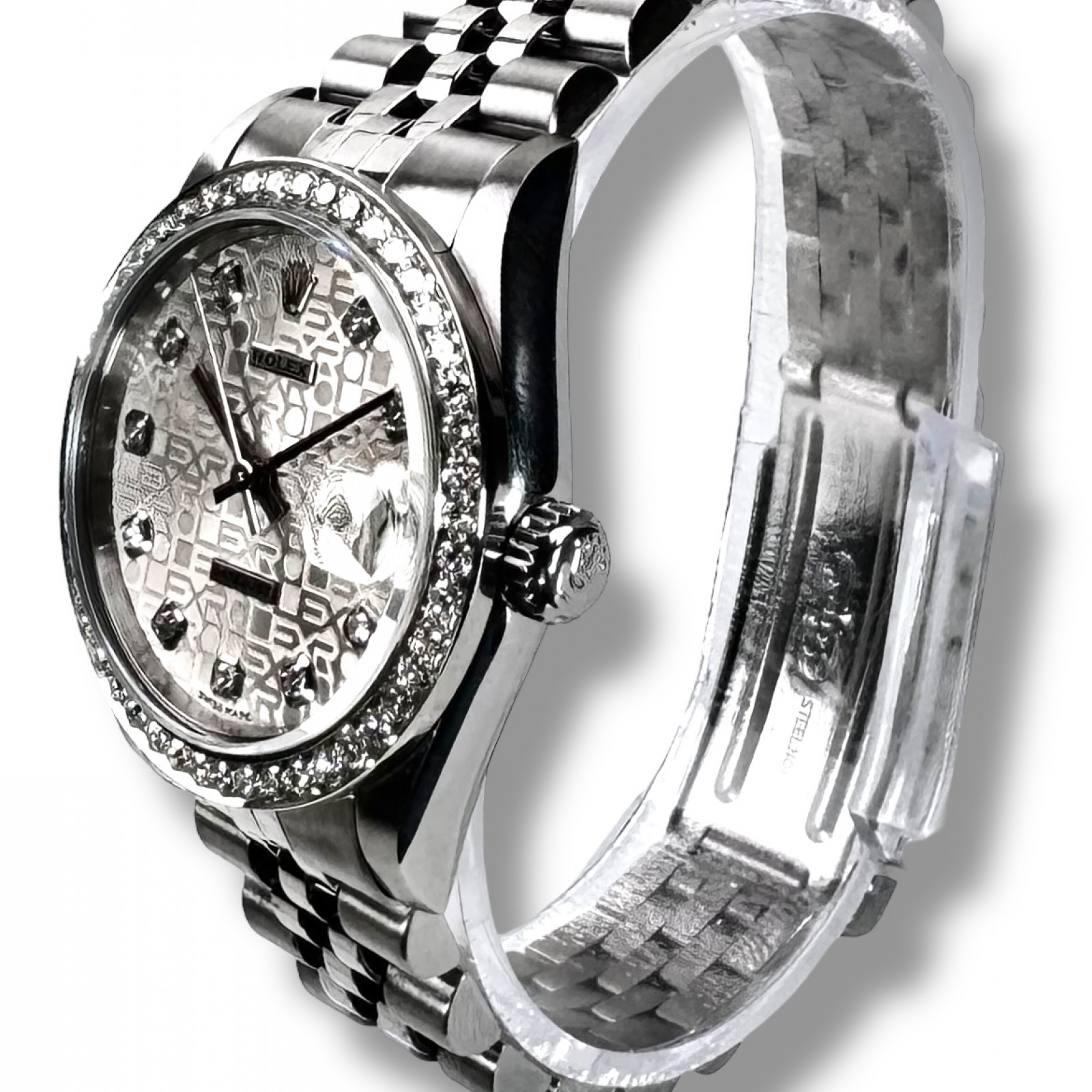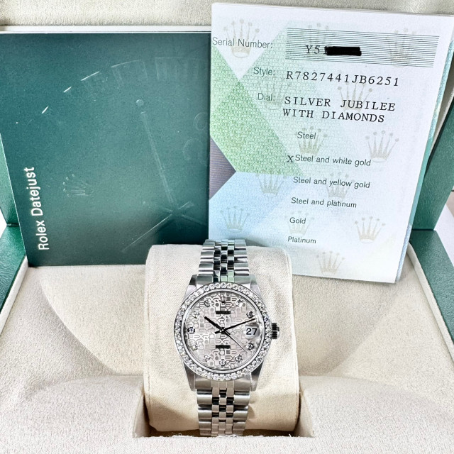 Experience the classic elegance and superior quality of the Rolex 78274 Datejust, featuring a Rolex Diamond Silver Dial. This exquisite timepiece is maintained in excellent condition and fully serviced, ensuring that all elements of the watch are functioning flawlessly. Its medium size of 31 mm makes it a perfect fit for not only men who prefer a discreet, understated style, but also for women who seek a bold, distinguished look.