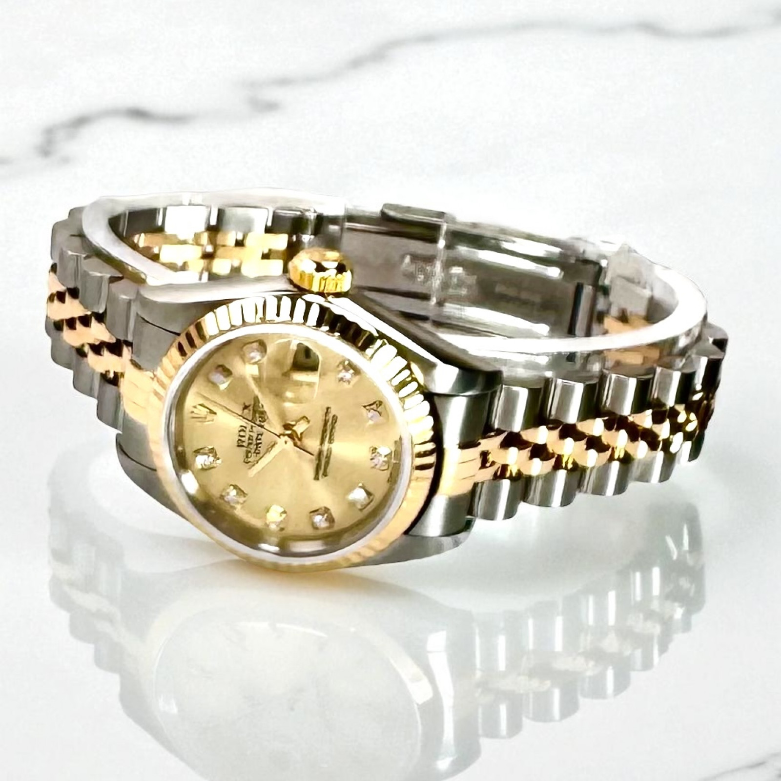 A noteworthy feature of the Rolex 79173 Datejust is its impressively beautiful Jubilee bracelet. This ornament is a testament to aesthetic finesse and technical expertise, masterfully constructed from a remarkable mixture of Stainless Steel and 18-karat Gold, also known by the code 62523. Initially conceived to dress the Oyster Perpetual Datejust during its inaugural release, the bracelet adds an ongoing layer of refinement and allure.