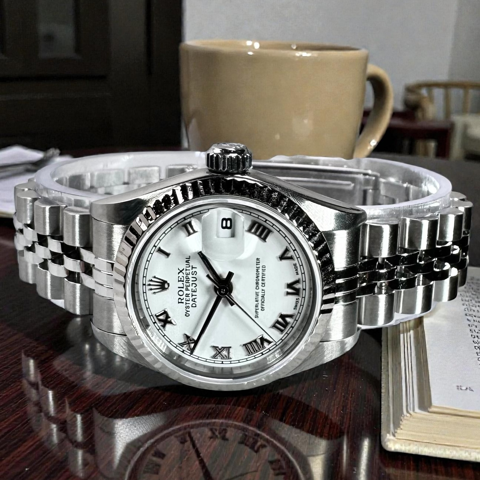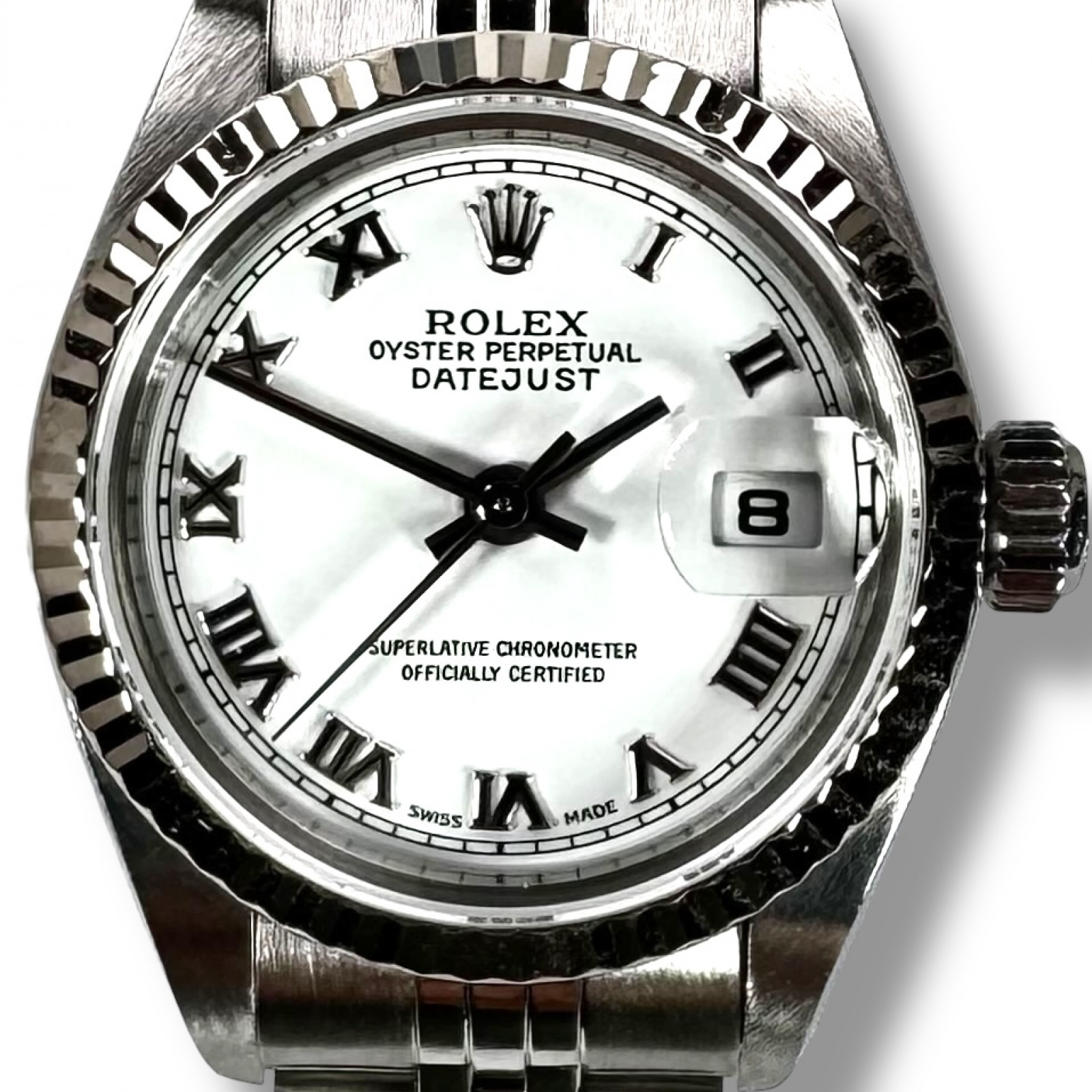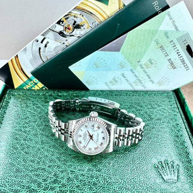 Capturing more than just time, this Rolex watch combines classic design, comprehensive craftsmanship, as well as the enduring brand reputation that Rolex has built over the years. Therefore, the 79174 Datejust model, with its White Roman dial and jubilee bracelet, is more than a timepiece; it is an expression of taste, style, and indulgence in a timeless masterpiece.