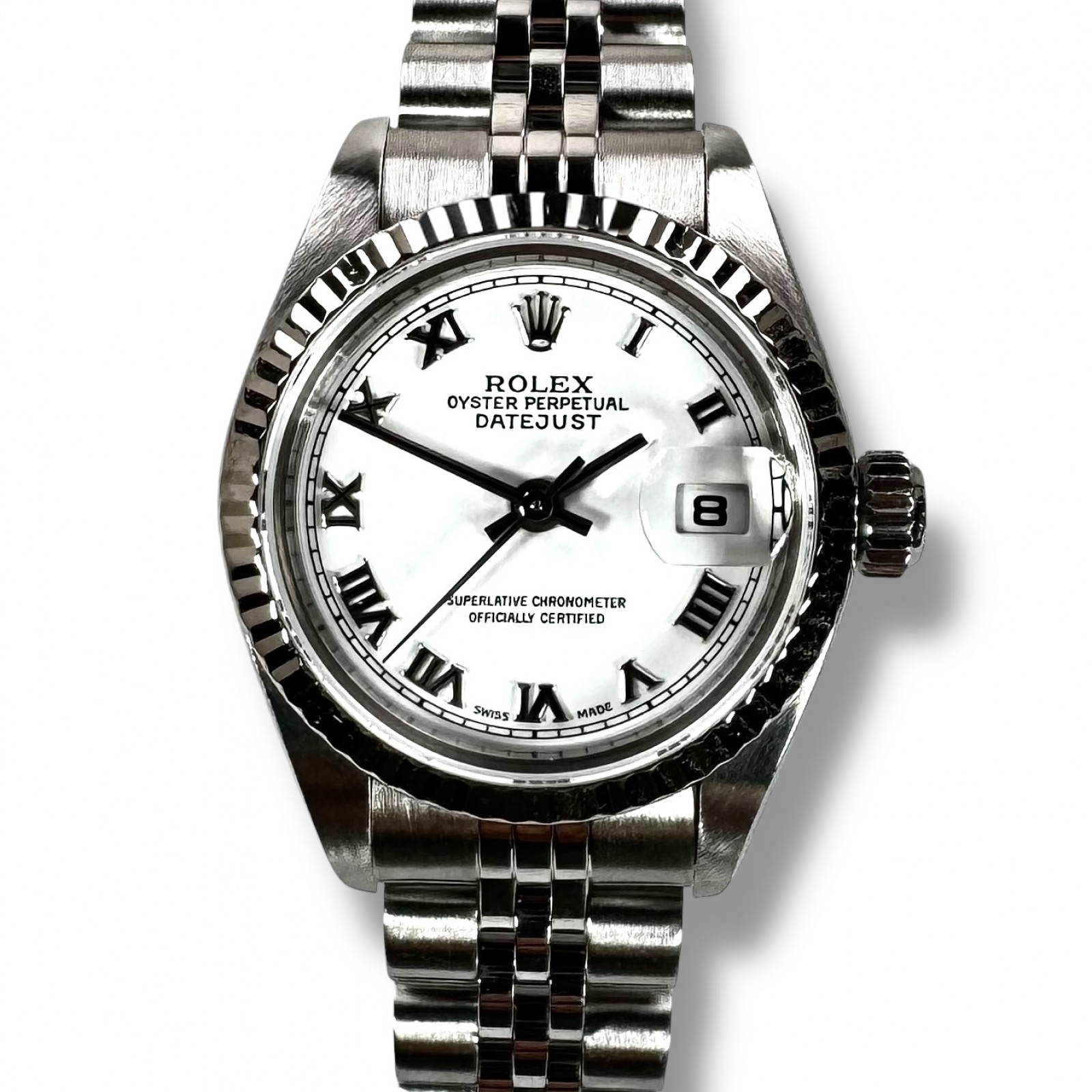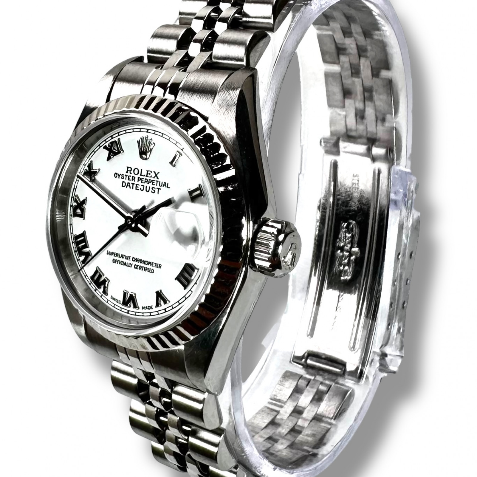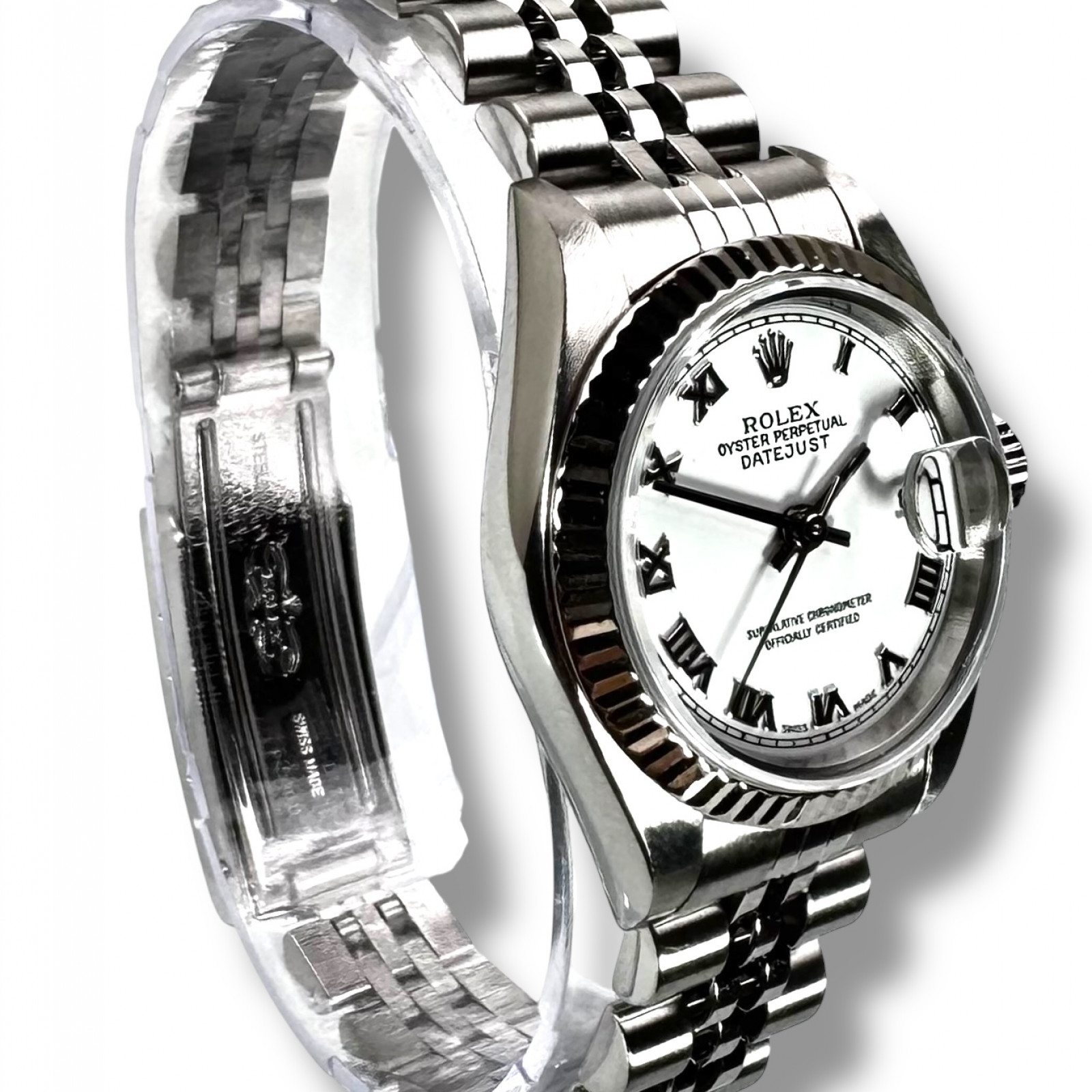 Capturing more than just time, this Rolex watch combines classic design, comprehensive craftsmanship, as well as the enduring brand reputation that Rolex has built over the years. Therefore, the 79174 Datejust model, with its White Roman dial and jubilee bracelet, is more than a timepiece; it is an expression of taste, style, and indulgence in a timeless masterpiece.