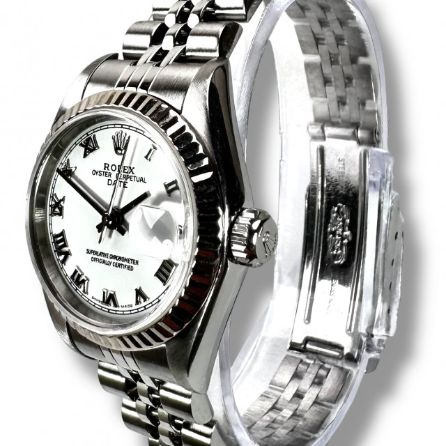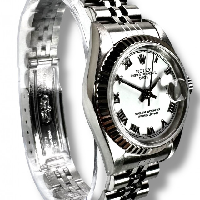 Signifying more than just time, this Rolex watch blends a classic design, extensive craftsmanship and the enduring brand credibility that Rolex has successfully established over its long-standing history. The 79174 Datejust model, with its notable White Roman dial and jubilee bracelet, transcends the status of a mere timepiece; it represents a channel for expressing personal style, preference and an appreciation for timeless marvels.