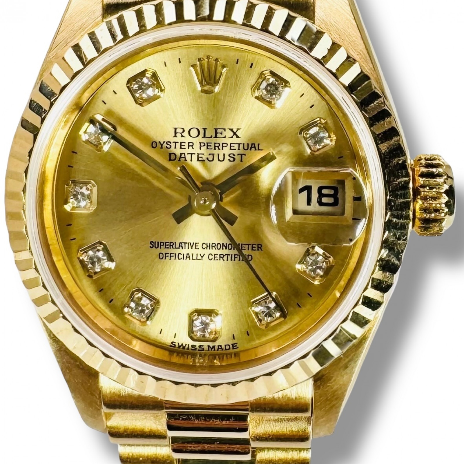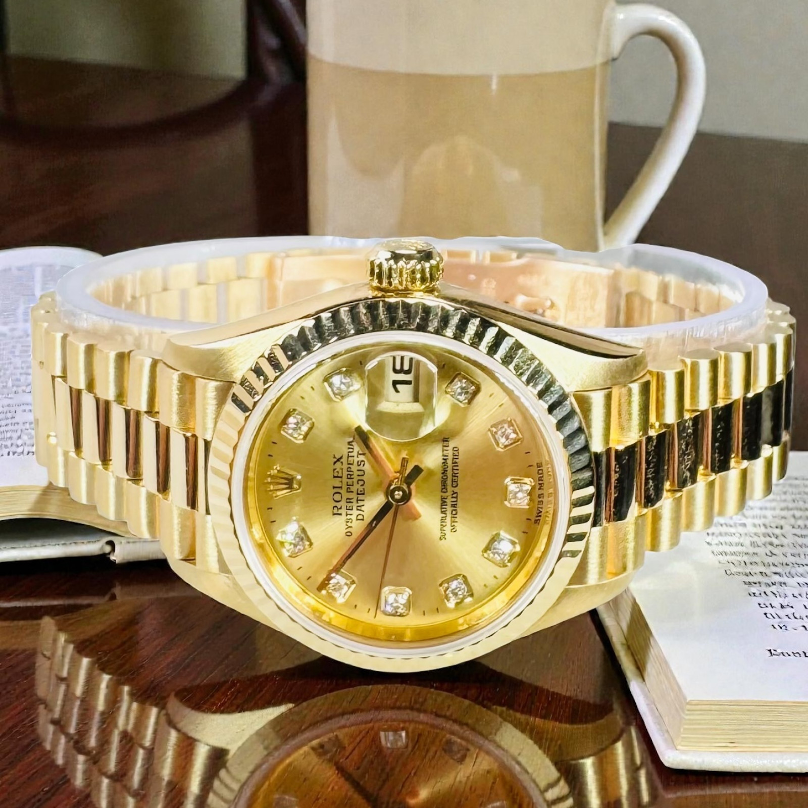 To conclude, the Rolex President 79178 Champagne Diamond Dial is more than just a timepiece; it's a piece of art that carries the unparalleled legacy of Rolex. This watch exemplifies the blend of Rolex’s traditional style and contemporary luxury, making it an irreplaceable piece that any Rolex lover should consider adding to their collection.