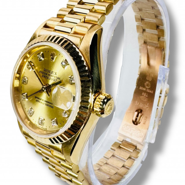 26 mm, Quickset Date, 18kt Yellow Gold Bracelet, Champagne Dial, Excellent Condition, Box, Booklets, Certificate