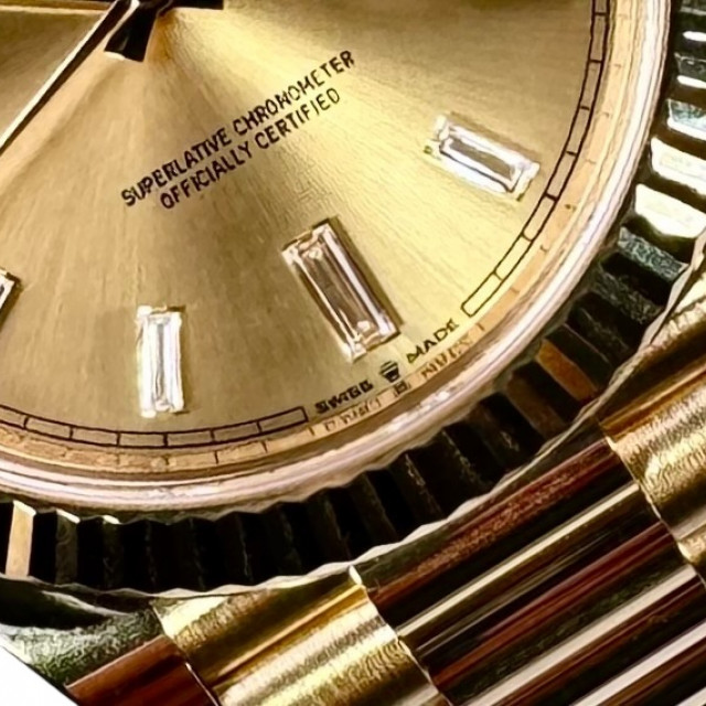 | Dial: | Champagne, 10 baguette-cut diamonds Markers, Original |