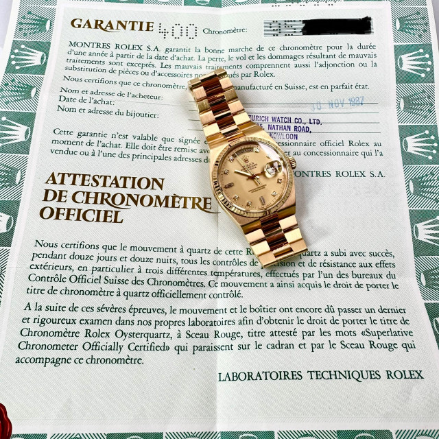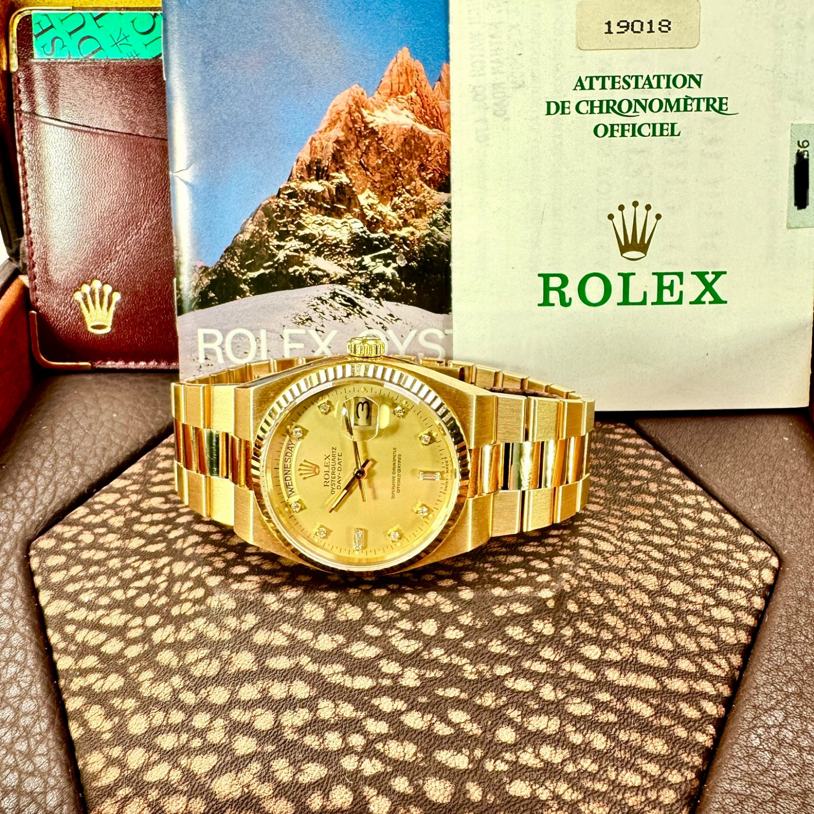 The Rolex Oysterquartz President Day-Date Yellow Gold Men's Watch, model 19018, transcends the ordinary concept of a wristwatch. It is an extraordinary timepiece crafted to embody opulence, luxury, and prestige in every meticulous detail. Crafted for those who value the essence of time and luxuriate in the grandeur life offers, this Rolex watch epitomizes innovative design, timeless elegance, and unrivaled durability. When you wear this Rolex timepiece, you're not just adorning a watch; you're proudly displaying a legacy on your wrist.