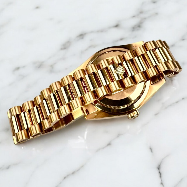 Keeping user comfort in mind, the Rolex President Day-Date 118238 is designed to provide a snug fit on any wrist. The straps are engineered to be as robust as the watch itself, ensuring longevity and durability. With a perfect touch of opulence, the solid gold links of the bracelet add a touch of class to this wardrobe staple.
