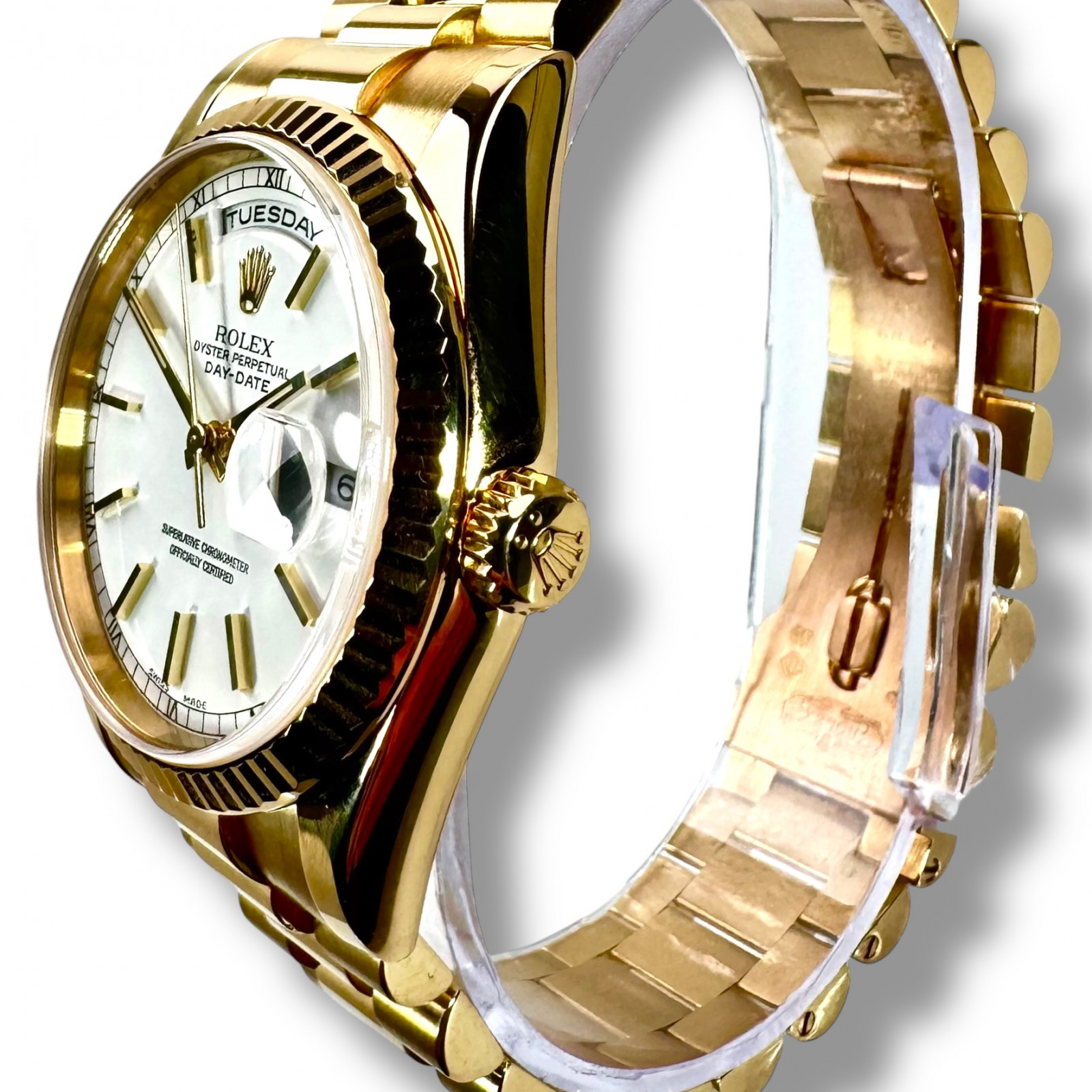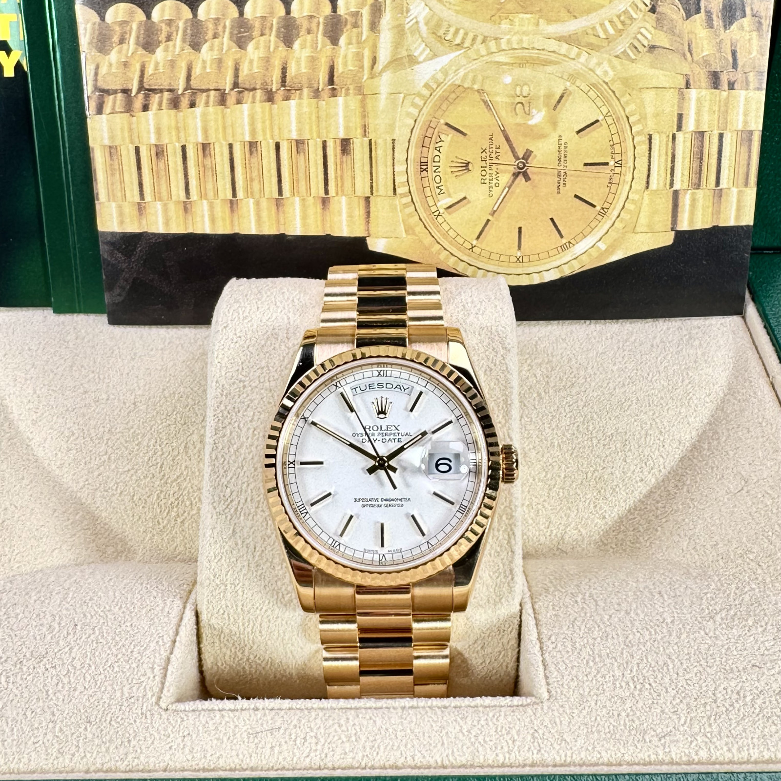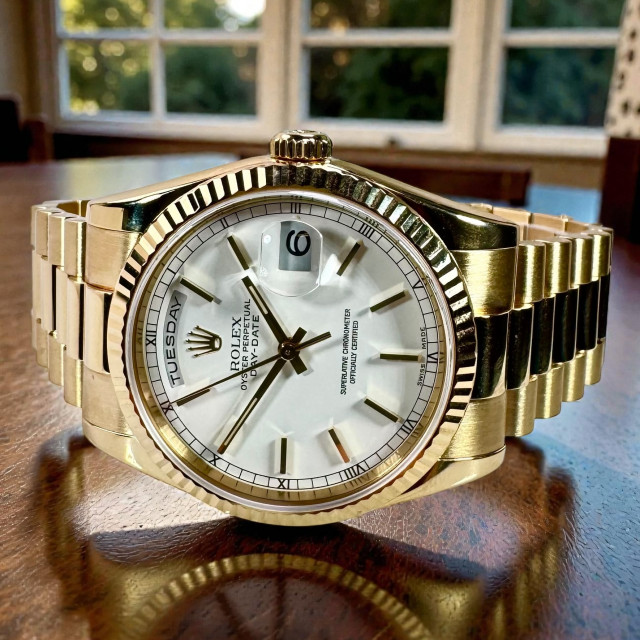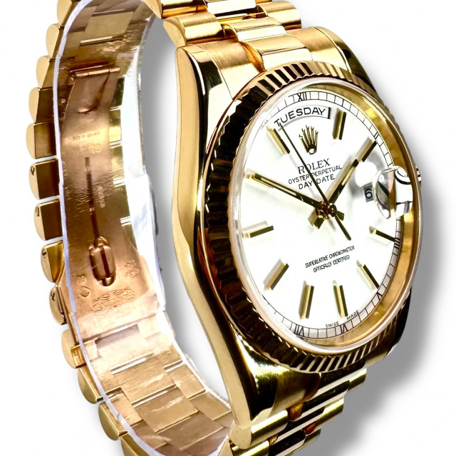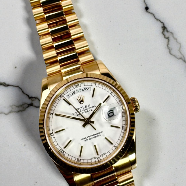 In summary, the Rolex President Day-Date 118238 18KT Solid Gold watch is a symbol of unmatched prestige, class, and precision. It serves as an emblem of the excellence that Rolex represents, becoming not just a timepiece but a part of your timeless style.