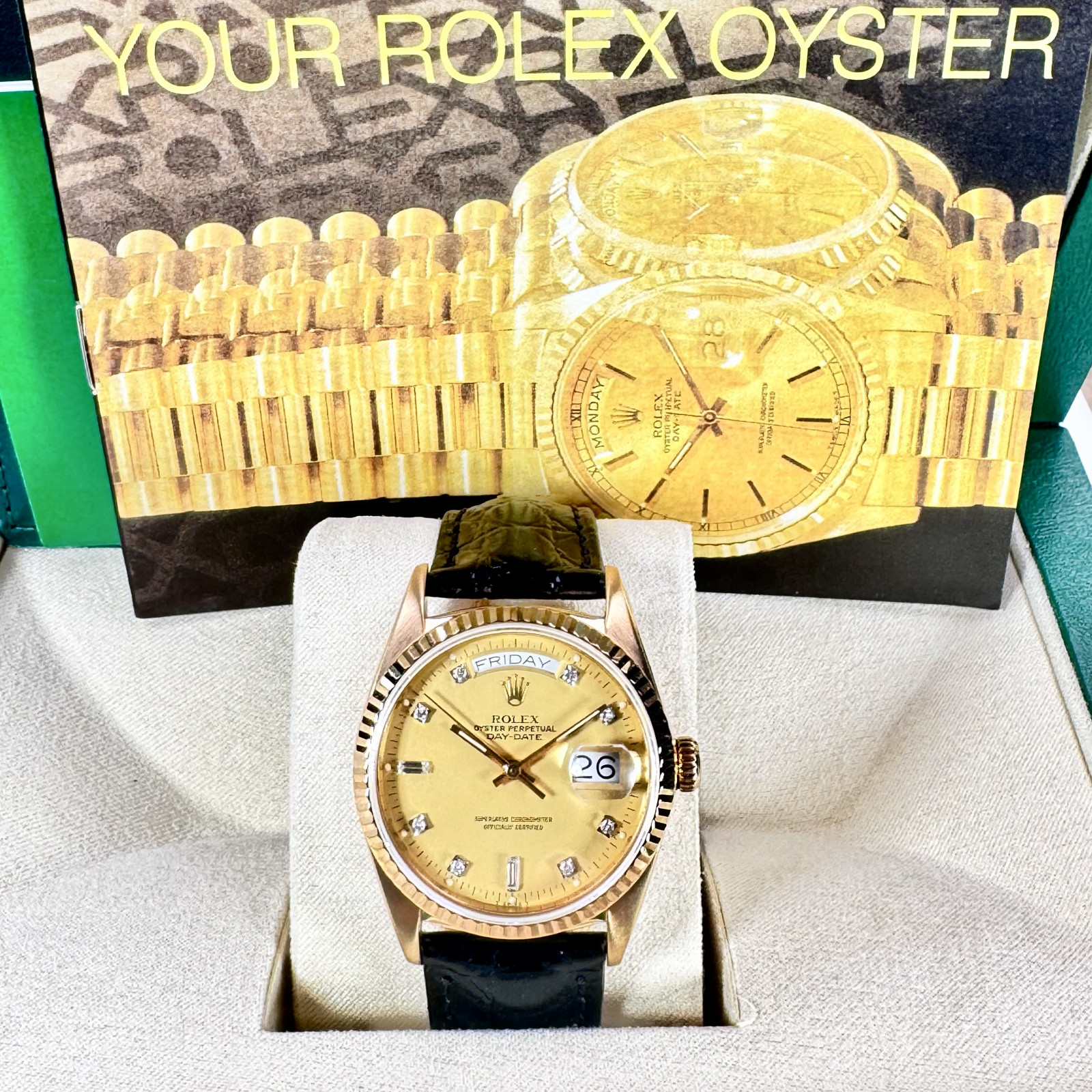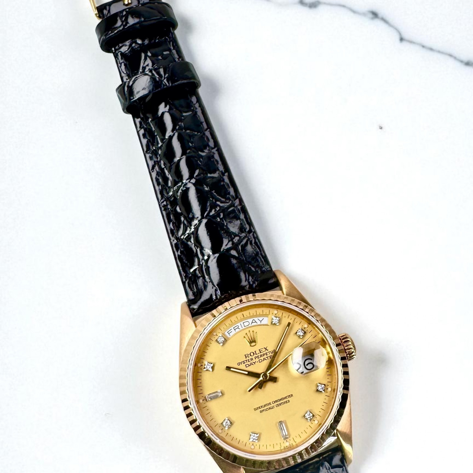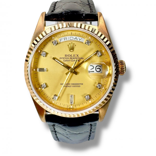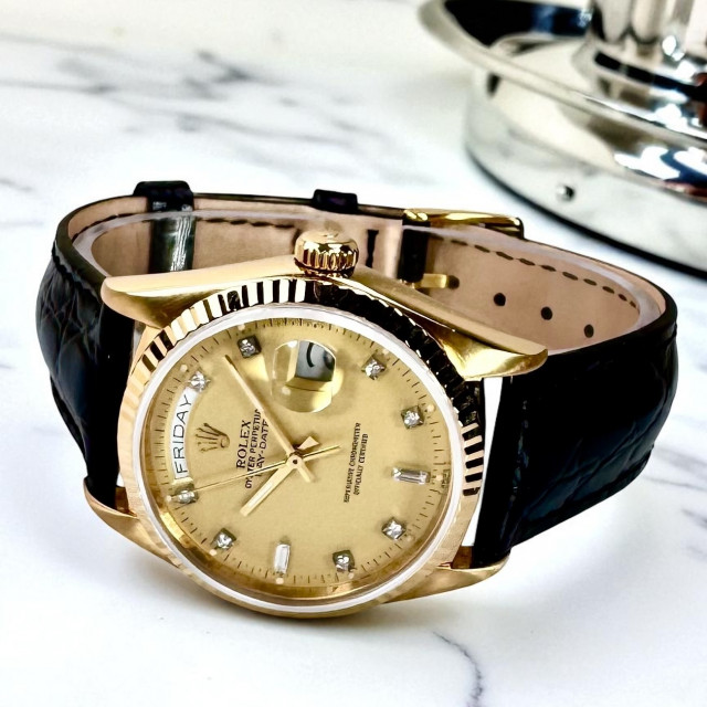 Finally, the Rolex 18038 is accessorized with a prestigious leather strap, an integral component that provides both comfort and style. The rich, supple strap heightens the timepiece's luxurious persona while ensuring maximum comfort during wear.