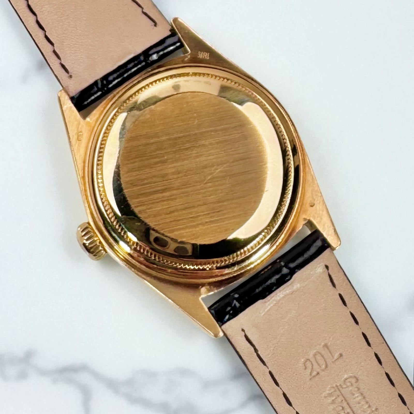 Exuding an aura of sophistication and style, we present the enchanting Rolex 18038 wristwatch, showcased in an impeccable condition. Expertly crafted from 18k solid gold, this exquisite timepiece emanates a lustre that eloquently speaks of its unparalleled craftsmanship and undeniable luxury that is distinctively Rolex.