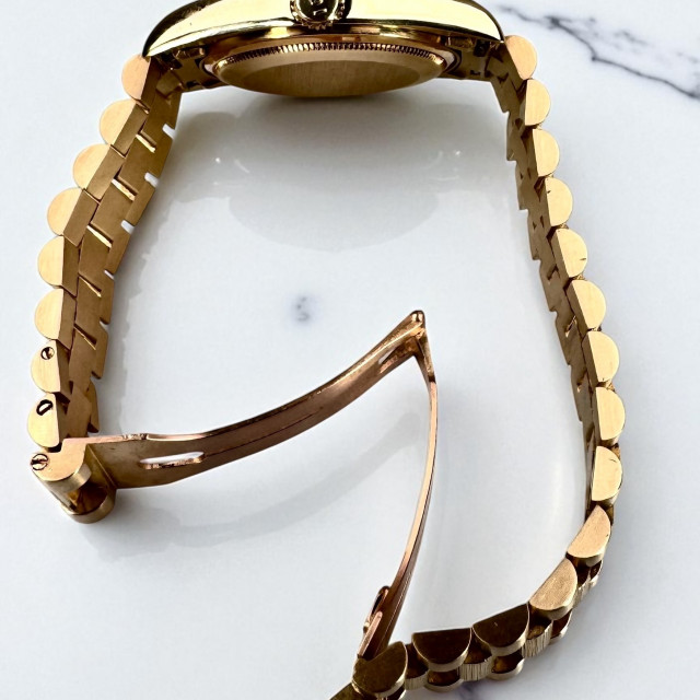 The magnifying Cyclops lens over the date window, featured in this model, enhances the date for easy reading, thus adding a functional edge to the elegance. All Day-Date models are equipped with a day-change system, offering a seamless transition at the stroke of midnight in a plethora of languages.