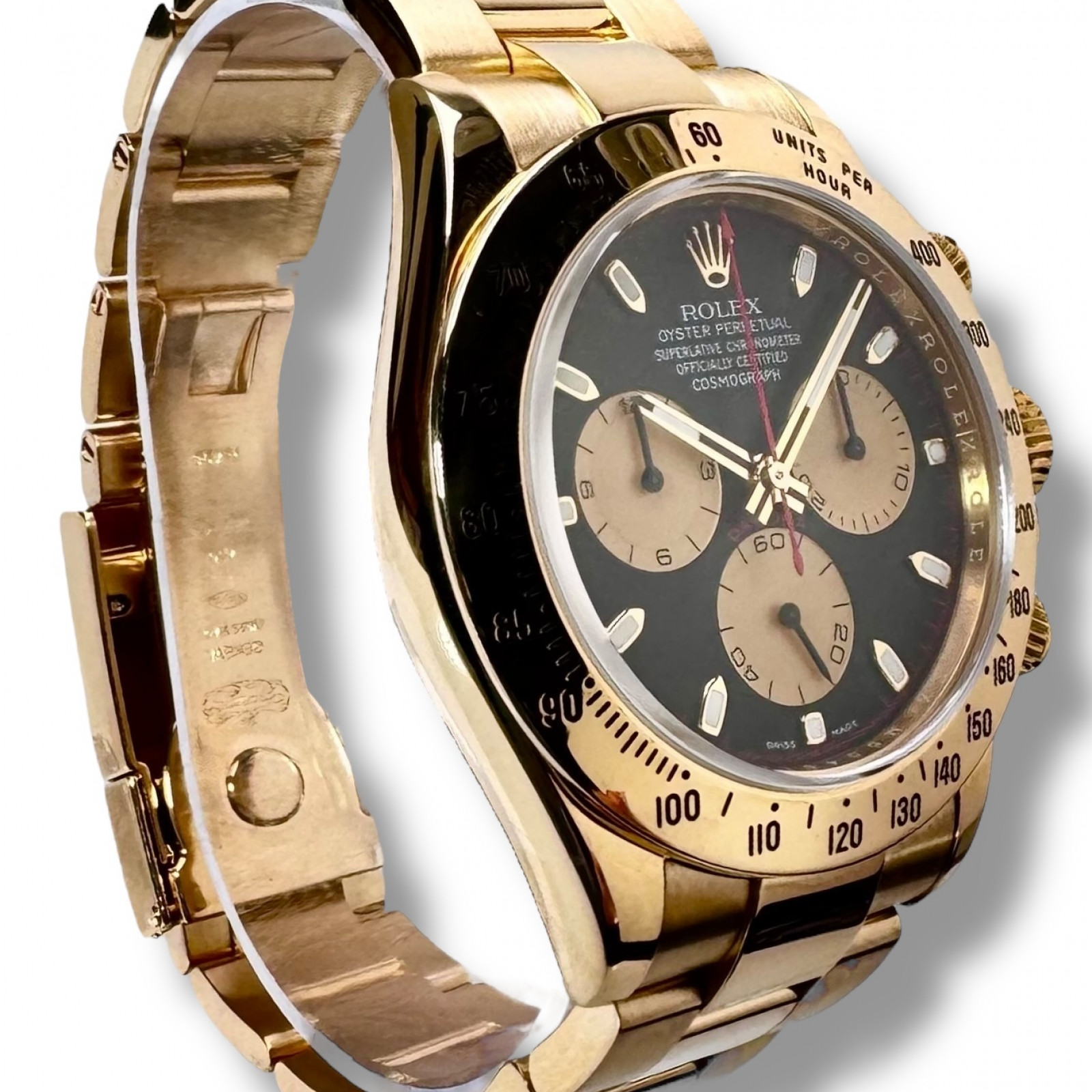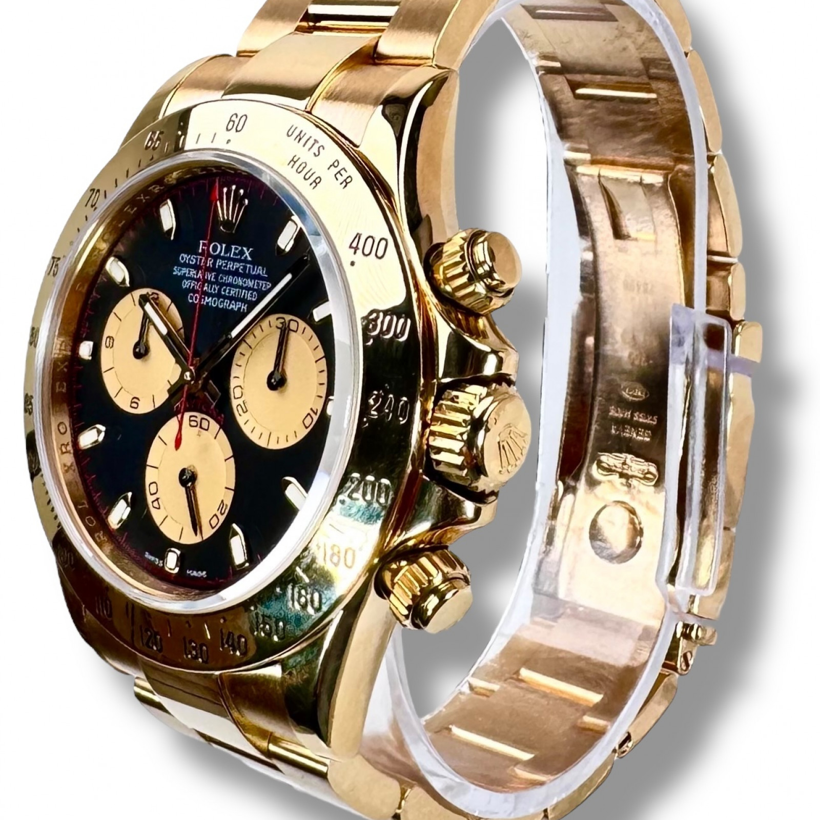 40 mm, Chronograph, 18kt Yellow Gold Bracelet, Paul Newman, Black Dial, Mint Condition, Box, Booklet, Certificate, Tags