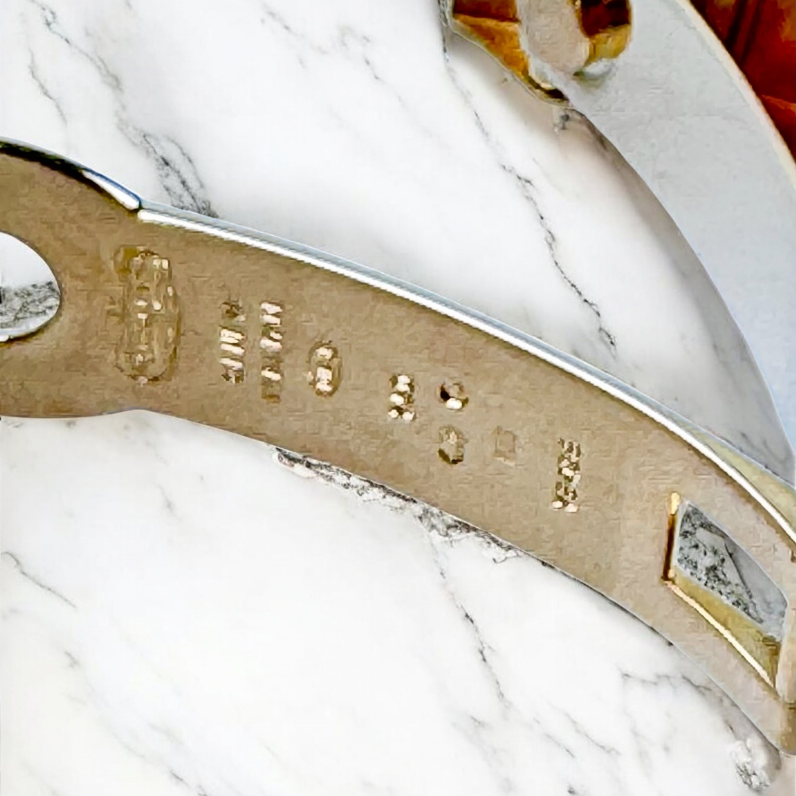 40 mm, Chronograph via centre seconds hand, 30-minute counter at 3 o'clock and 12-hour counter at 9 o'clock., 18kt Yellow Gold & Stainless Steel Bracelet, Golden counter rings, White Dial, Mint Condition, Box, Booklets, Certificate, Tags
