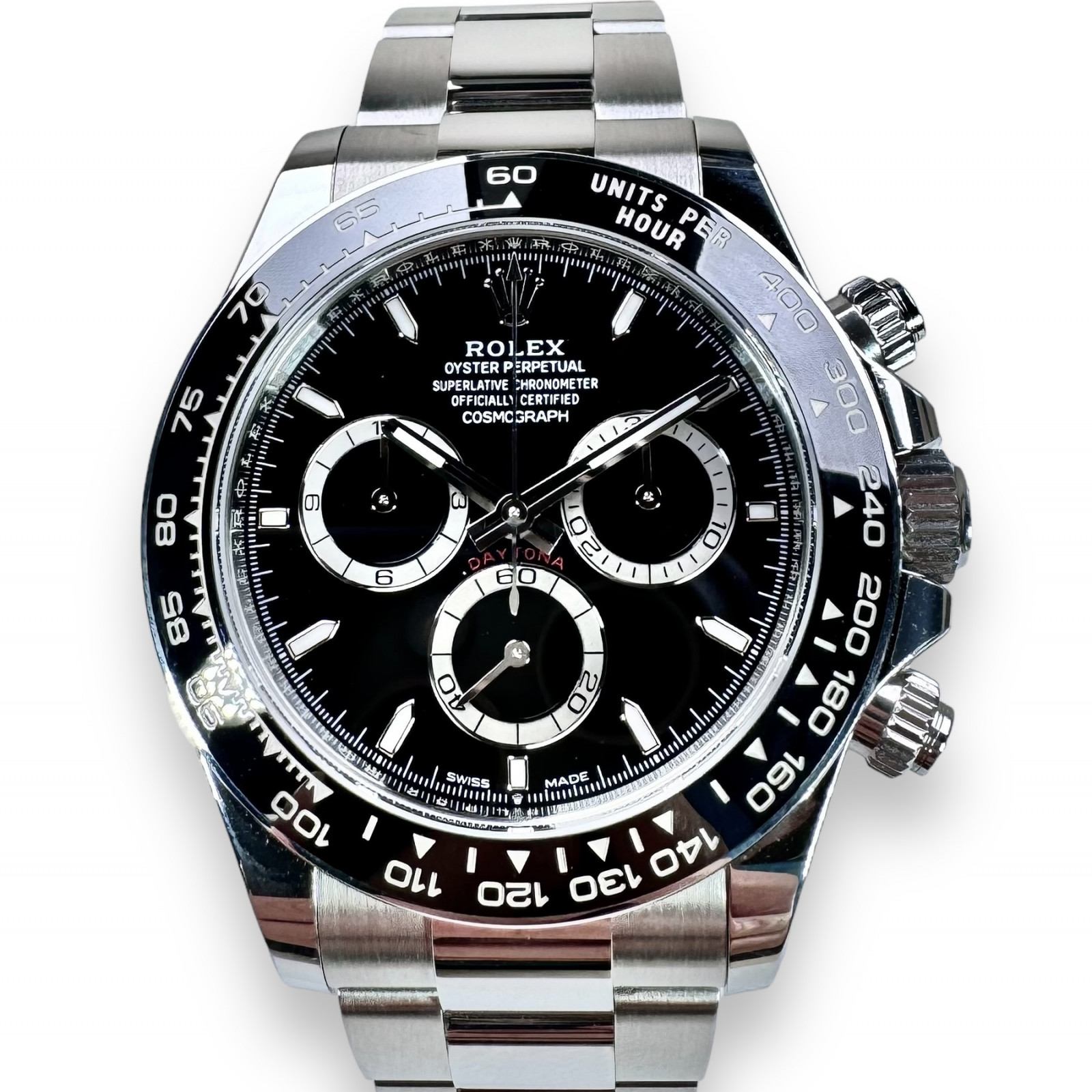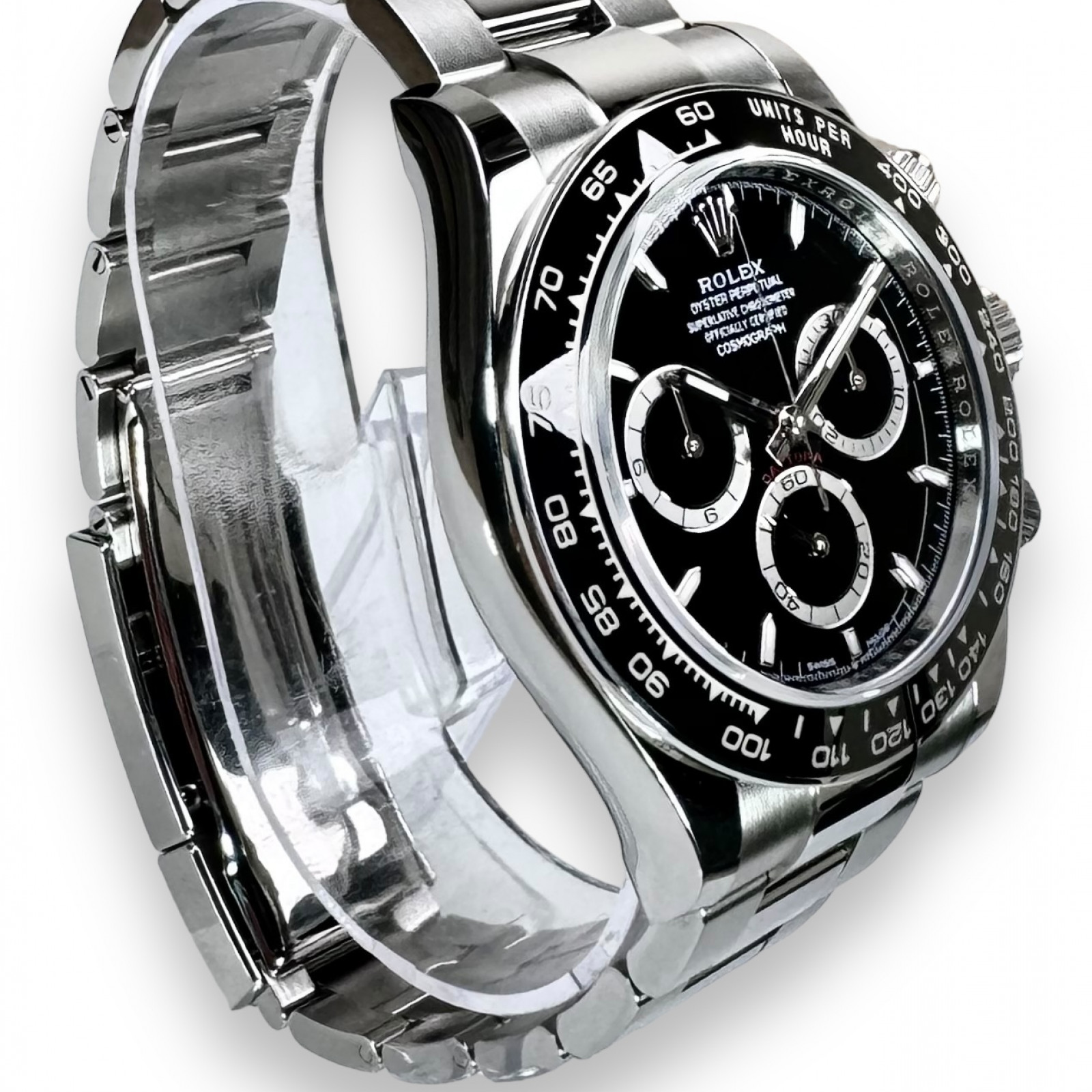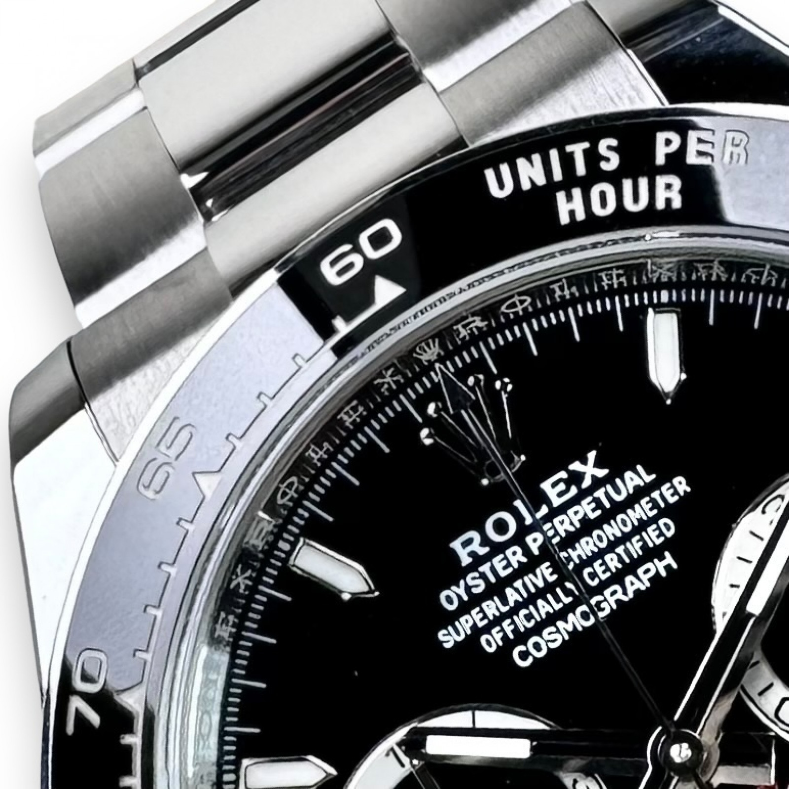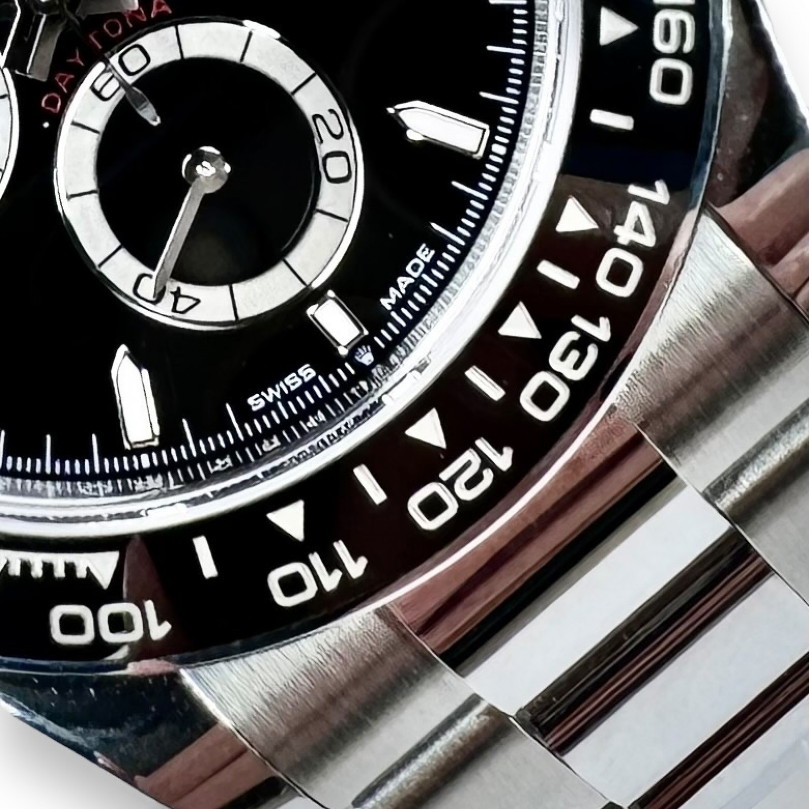 Exuding an air of prestige and accuracy, this luxury chronograph epitomizes the high standard of Rolex craftsmanship. The Daytona 126500 features a sturdy, ultra-premium oyster steel bracelet which perfectly marries strength with elegance. This bracelet’s design ensures optimum comfort while offering superior resistance to corrosion. This attests to its unyielding durability and strength, making it a lasting investment.
