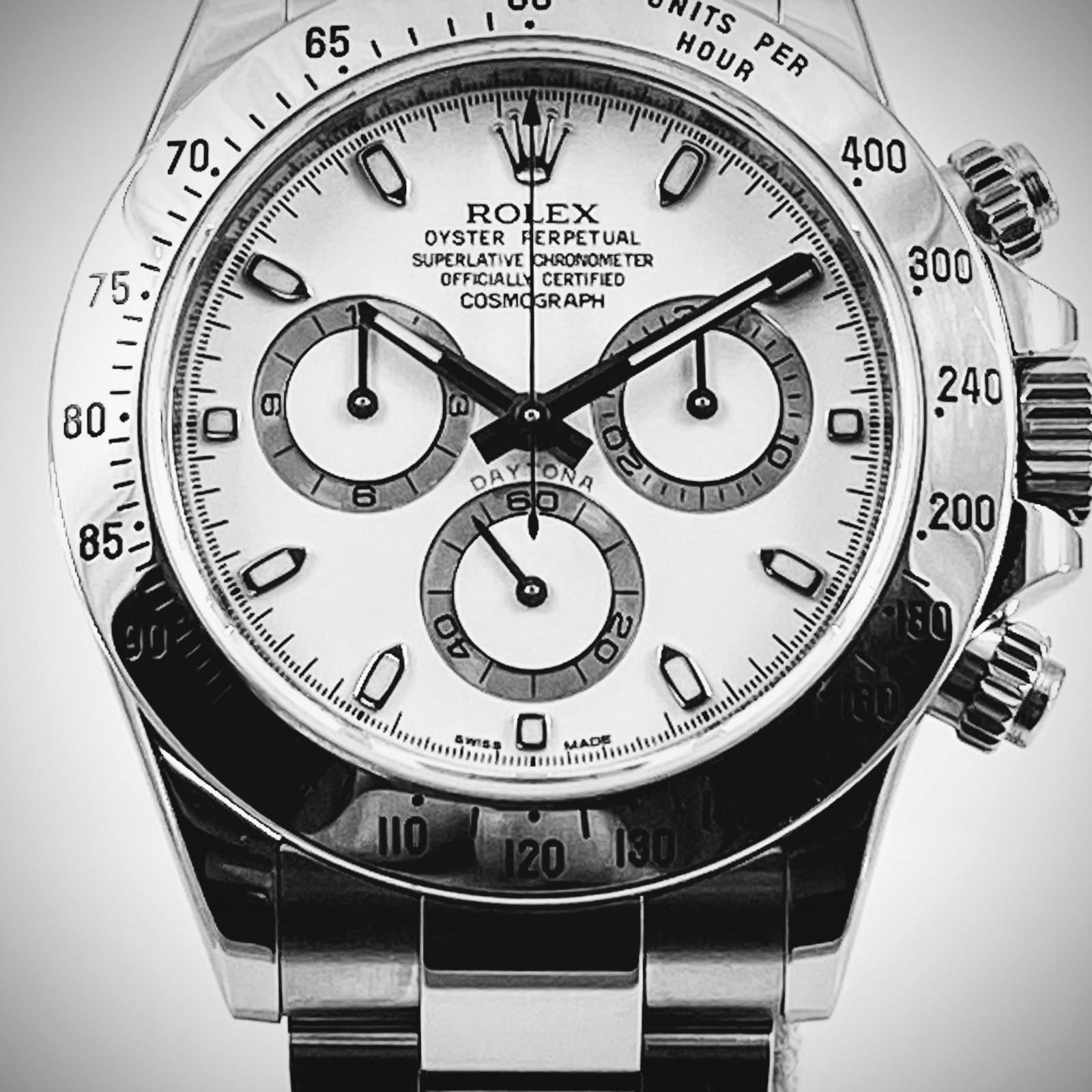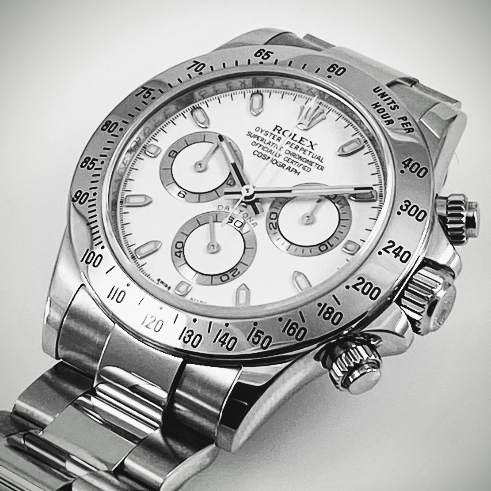 Introducing the legendary and highly sought-after Rolex Daytona 116520, all the more coveted for its APH White Dial variant, a significant mark of distinction among timepiece aficionados. This gorgeous collectible hails from Rolex’s revered Daytona line, known for their patrimony of excellence and elegance in watch design.