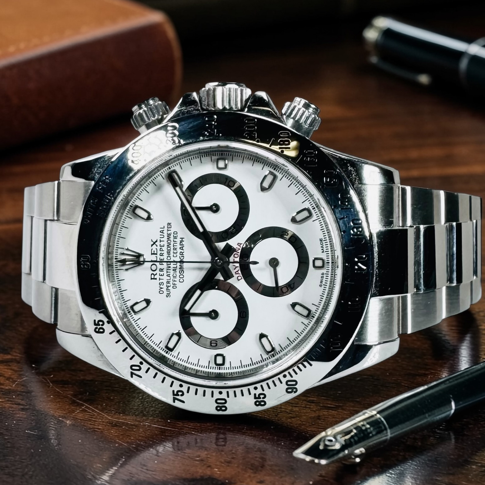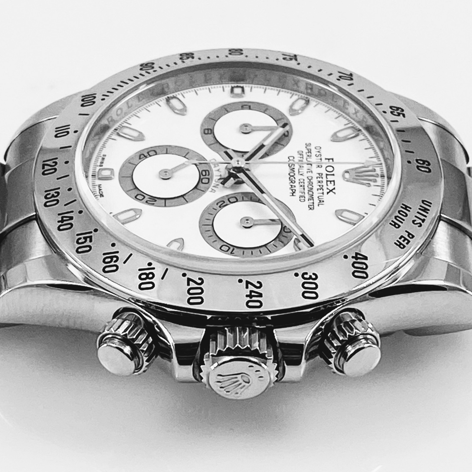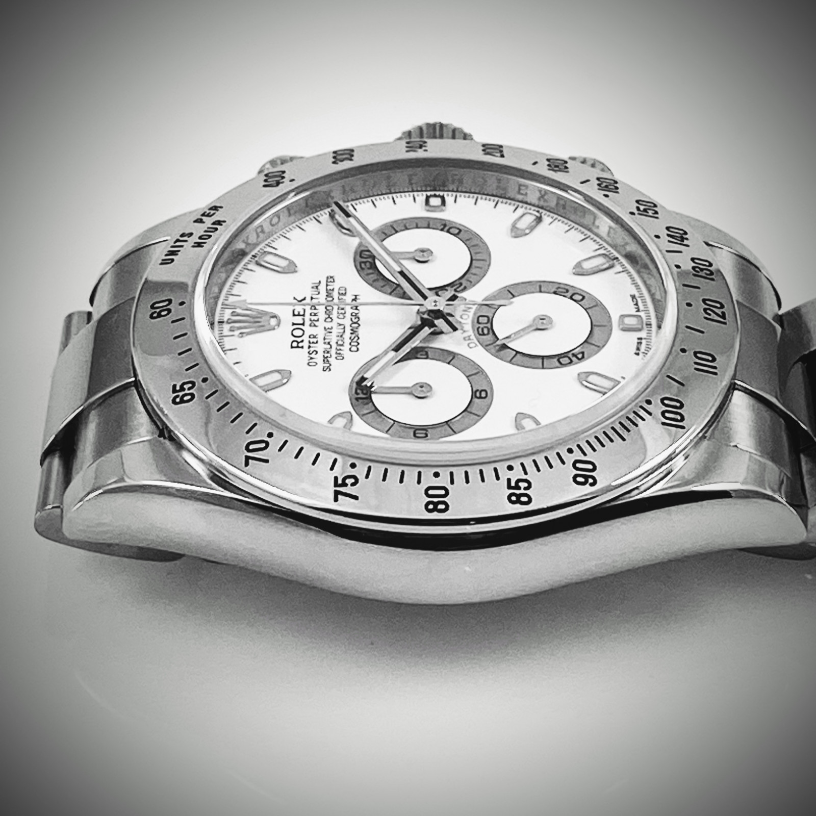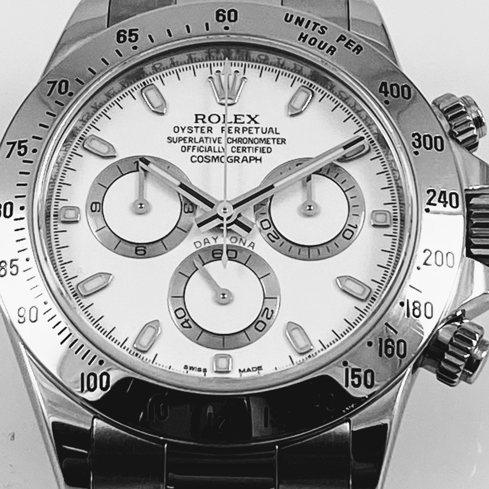 A final treat for collectors, this particular Daytona dates back to 2014, the last production year where the "APH" error dials were found on Daytona watches. This novelty makes the Rolex Daytona 116520 with the APH White Dial a truly unique and fascinating addition to any high-quality watch collection. This spectacular watch isn't just a tool for timekeeping; it is a testament to the extraordinary work Rolex puts into every timepiece.
