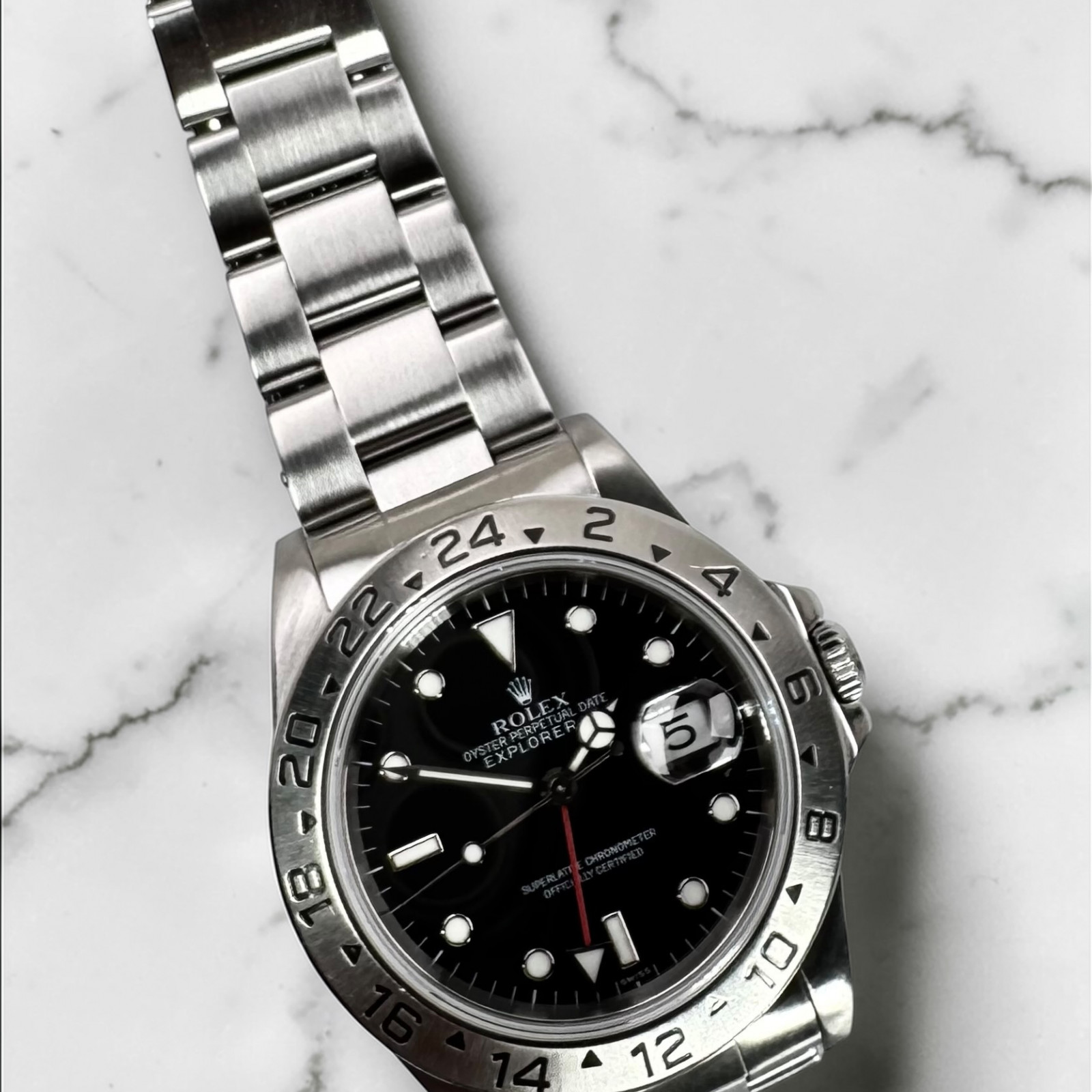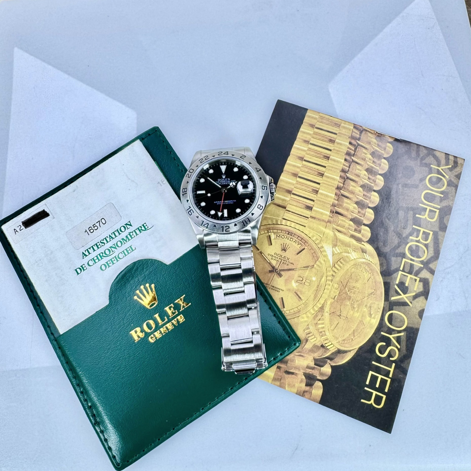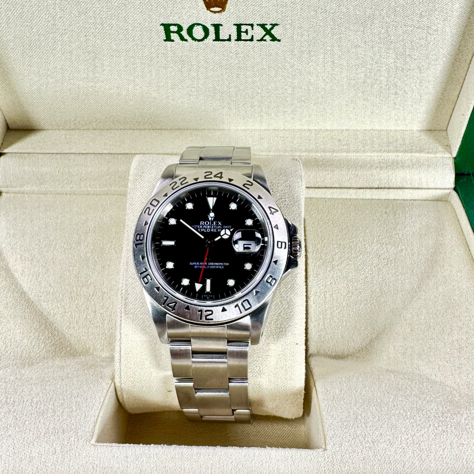 The Rolex Explorer II 16570 "Polar" has proudly received certification from the esteemed Contrôle Officiel Suisse des Chronomètres (Official Swiss Chronometer Testing Institute - COSC), an arm of the Swiss Watch Industry's Anti-fraud group. This certification provides an added layer of reassurance for potential buyers, reaffirming the precision and genuineness of this magnificent timepiece.