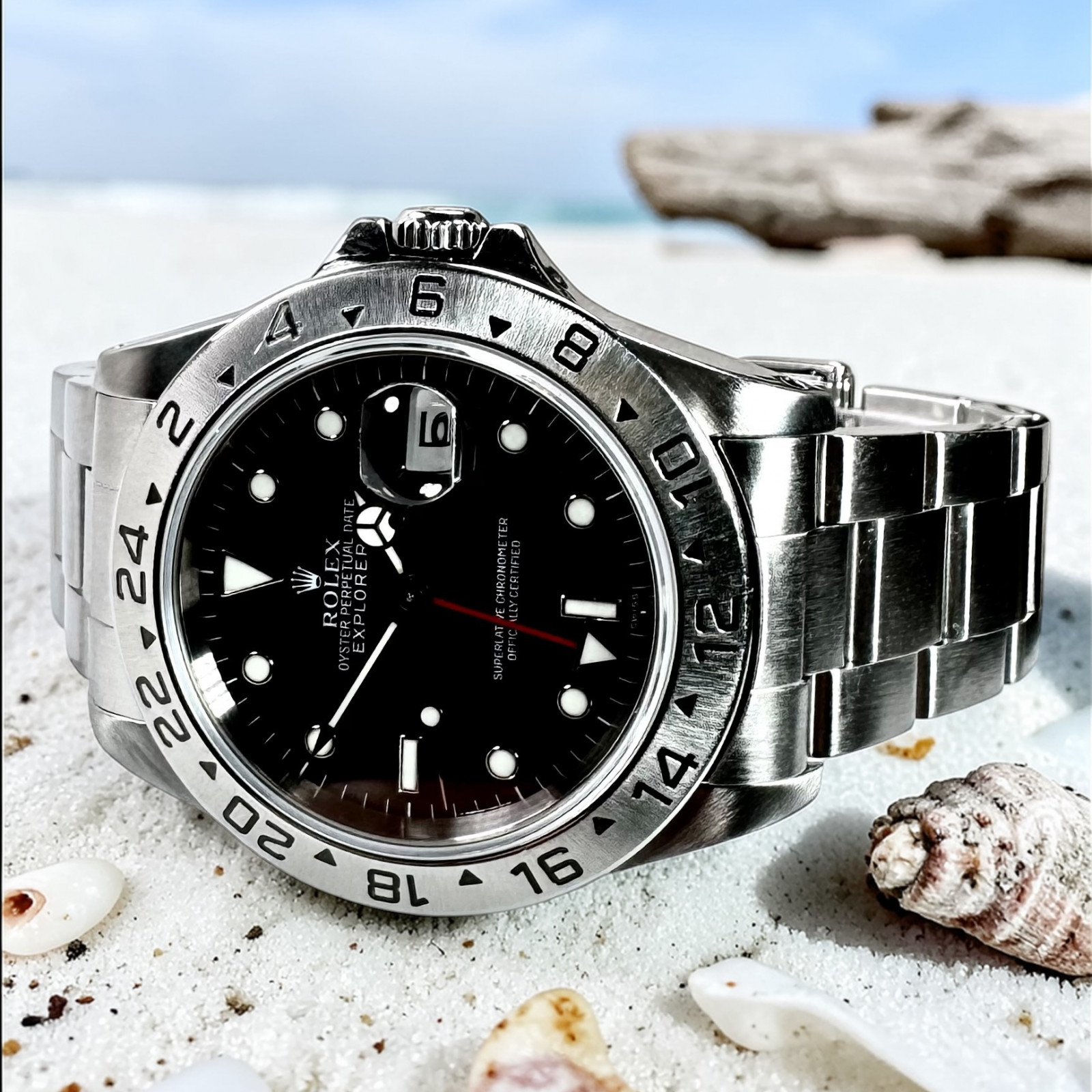 The 16570 radiates unparalleled resilience and exquisite design aesthetics, flaunting a robust 40mm casing constructed from durable stainless steel. This embodiment of strength is complemented gorgeously with top-notch aesthetic appeal. The timepiece features a flawlessly engineered Oyster bracelet model 93150, creating an impeccable balance of distinguished artistry and functional convenience. Within the core of this watch is the potent Calibre 3185 movement, upholding Rolex's impressive horological expertise garnered over years of innovation. Adventurers sporting this watch marvel at its impeccable ability to maintain time with incomparable precision.