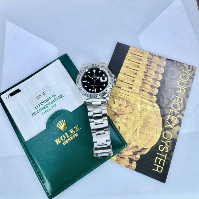 When Rolex unveiled the remarkable model 16570, it marked a resounding triumph. This particular timepiece carved its indelible mark in the annals of horology, earning international admiration, and additionally strengthening Rolex's robust position as a leading trailblazer in the global horological ambit. A signature characteristic of the Rolex Explorer II 16570 that sets it apart, is its added hand and a stationary 24-hour bezel. These unique features were thoughtfully designed to meet the specific needs of world nomads and avid expeditionists.