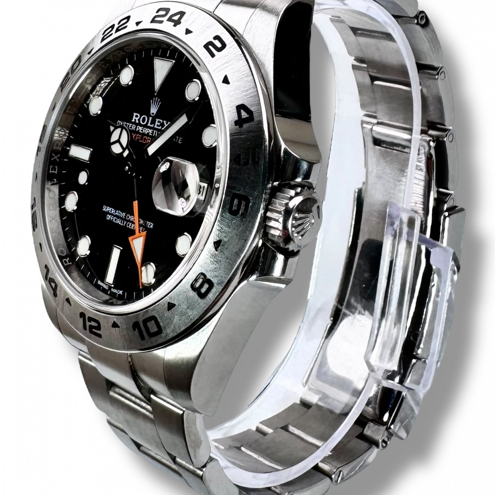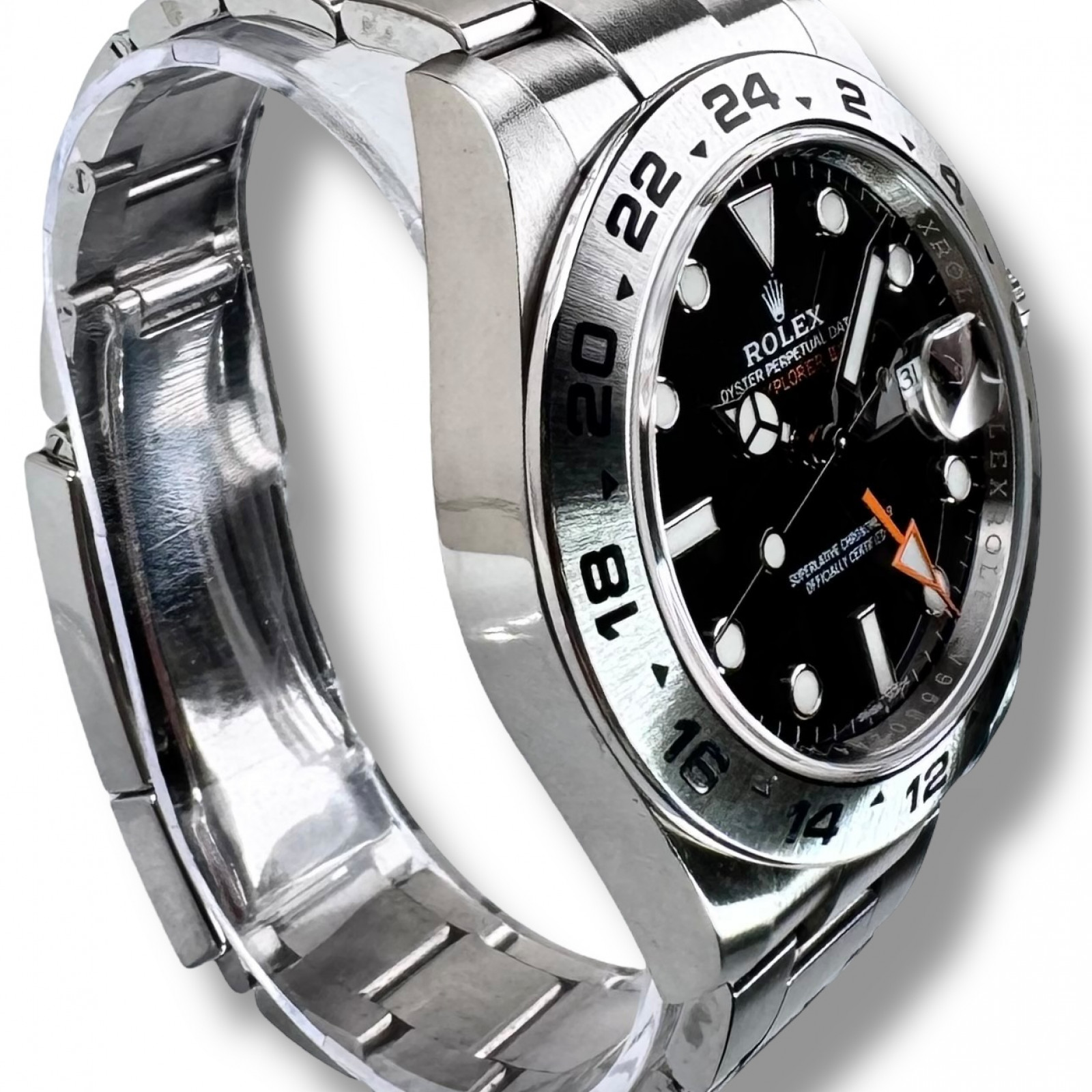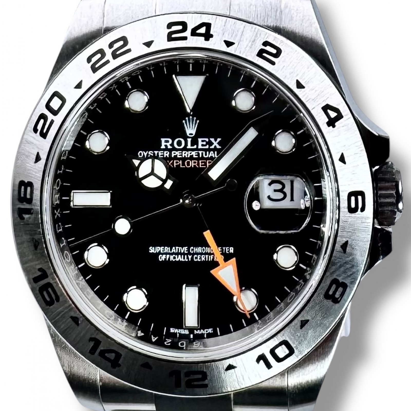 Remarkably, the Rolex Explorer II 216570 is certified waterproof to a depth of 330 feet, assuring robust performance in even the most challenging conditions. Whether you're exploring rugged terrains, traversing oceans, or simply navigating through your day-to-day life, this timepiece is made to withstand it all.