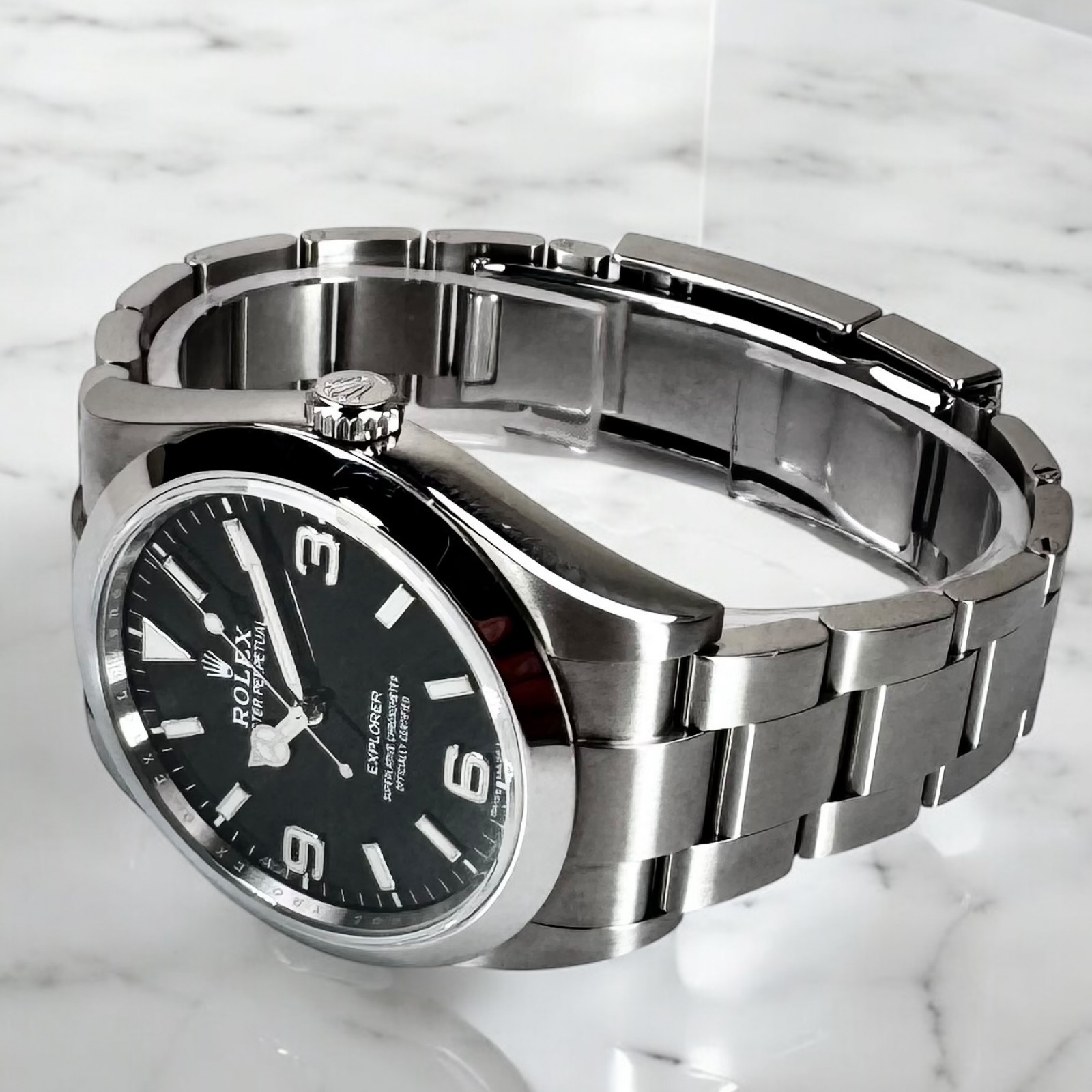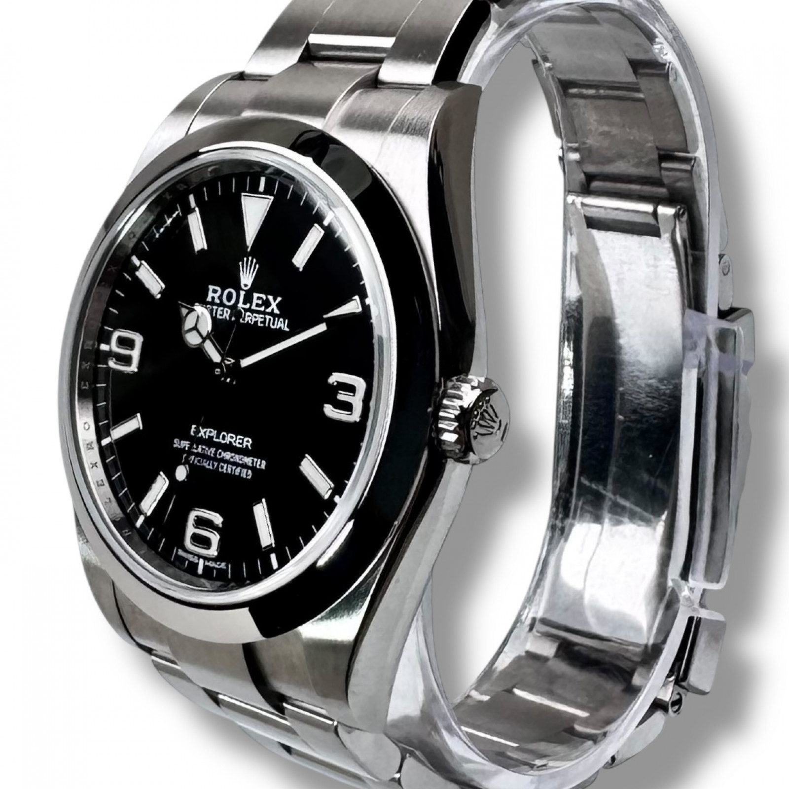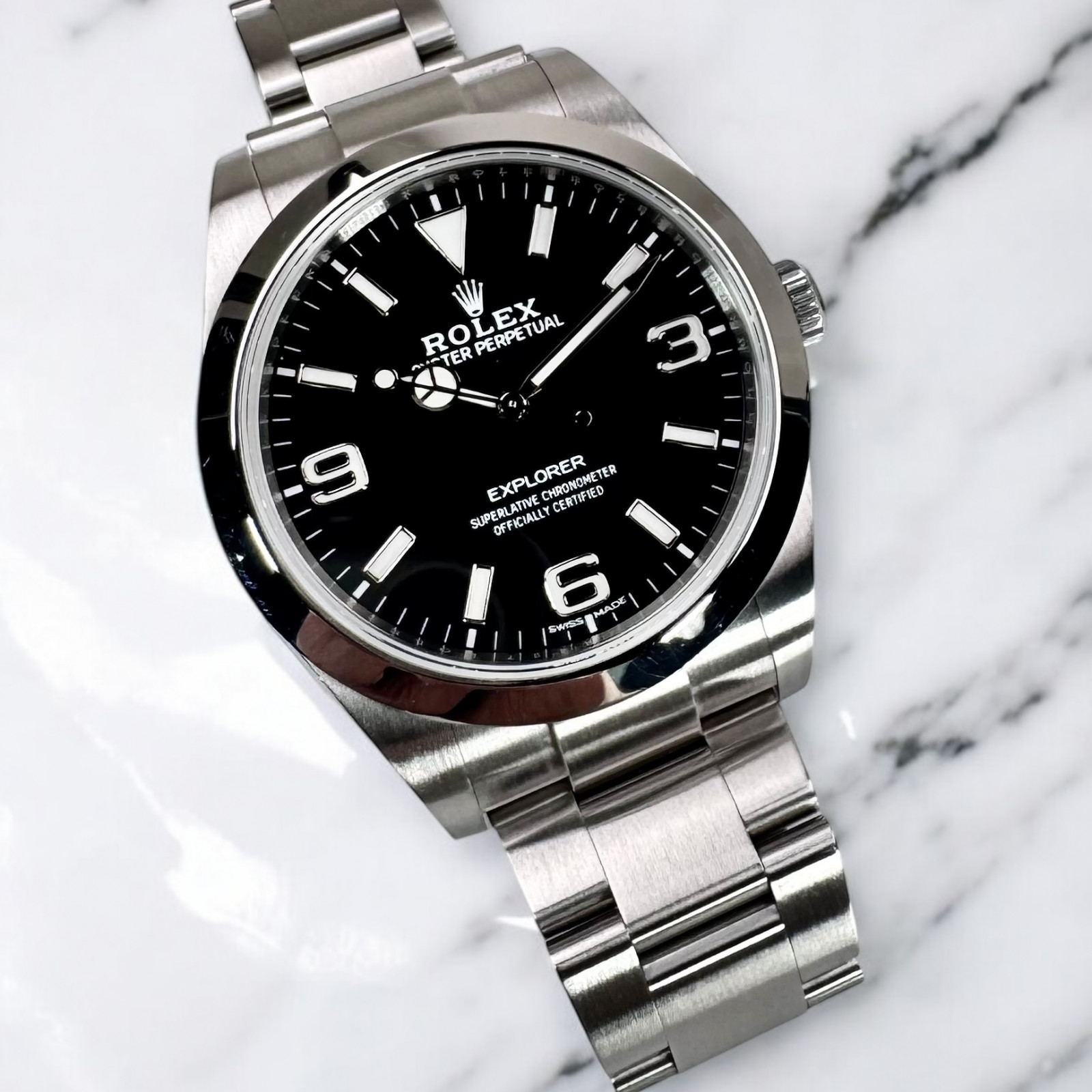 The Rolex Explorer, model 214270, is an icon of timeless design and luxury horology. Produced in 2020, this exquisite timepiece is in mint condition, featuring an array of high-end specifications and an intriguing history that sets it apart from the crowd. The model is no longer produced in the popular 39mm size, adding to its scarcity and desirability among savvy collectors and watch enthusiasts.