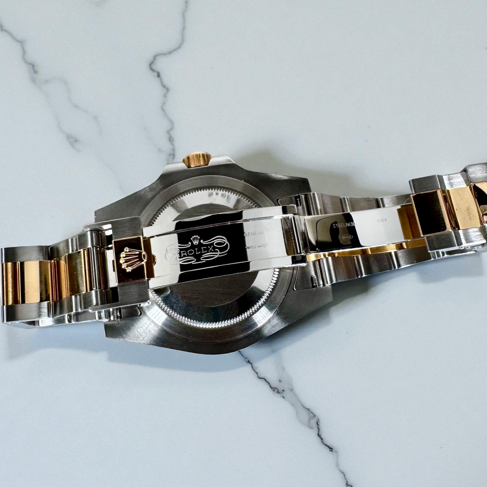 The piece fits snugly around your wrist, thanks to the iconic Oyster bracelet's sophisticated blend of sturdy Stainless Steel and opulent Gold. This exceptional combination elevates the allure and grandeur of the Rolex 116713, ensuring a comfortable and seamless wear throughout the day.