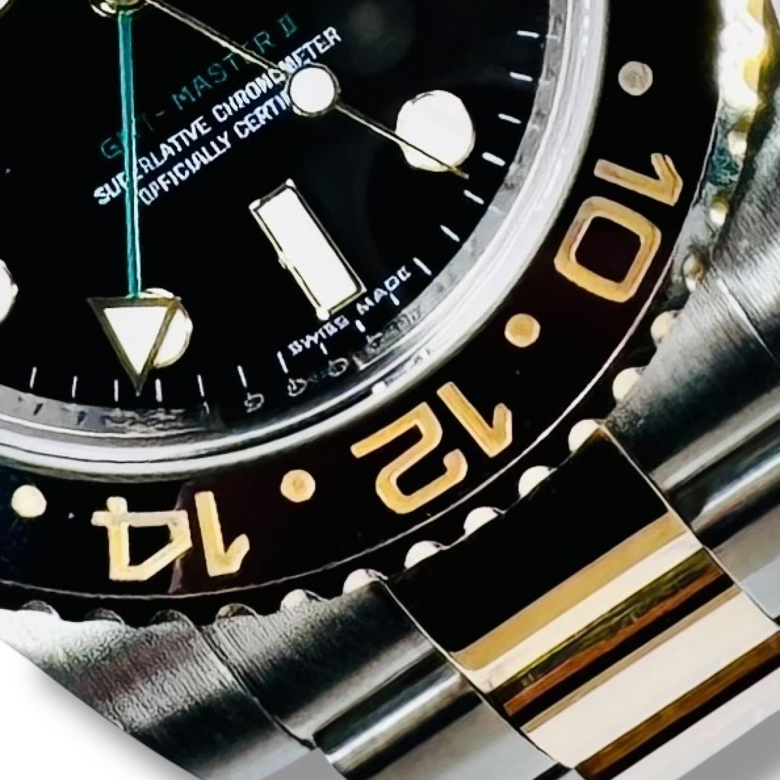 | Bezel: | 18kt Yellow Gold, Black Ceramic, Gold Engraved Cerachrom Insert, 24 Hour Graduated Bidirectional Rotatable |