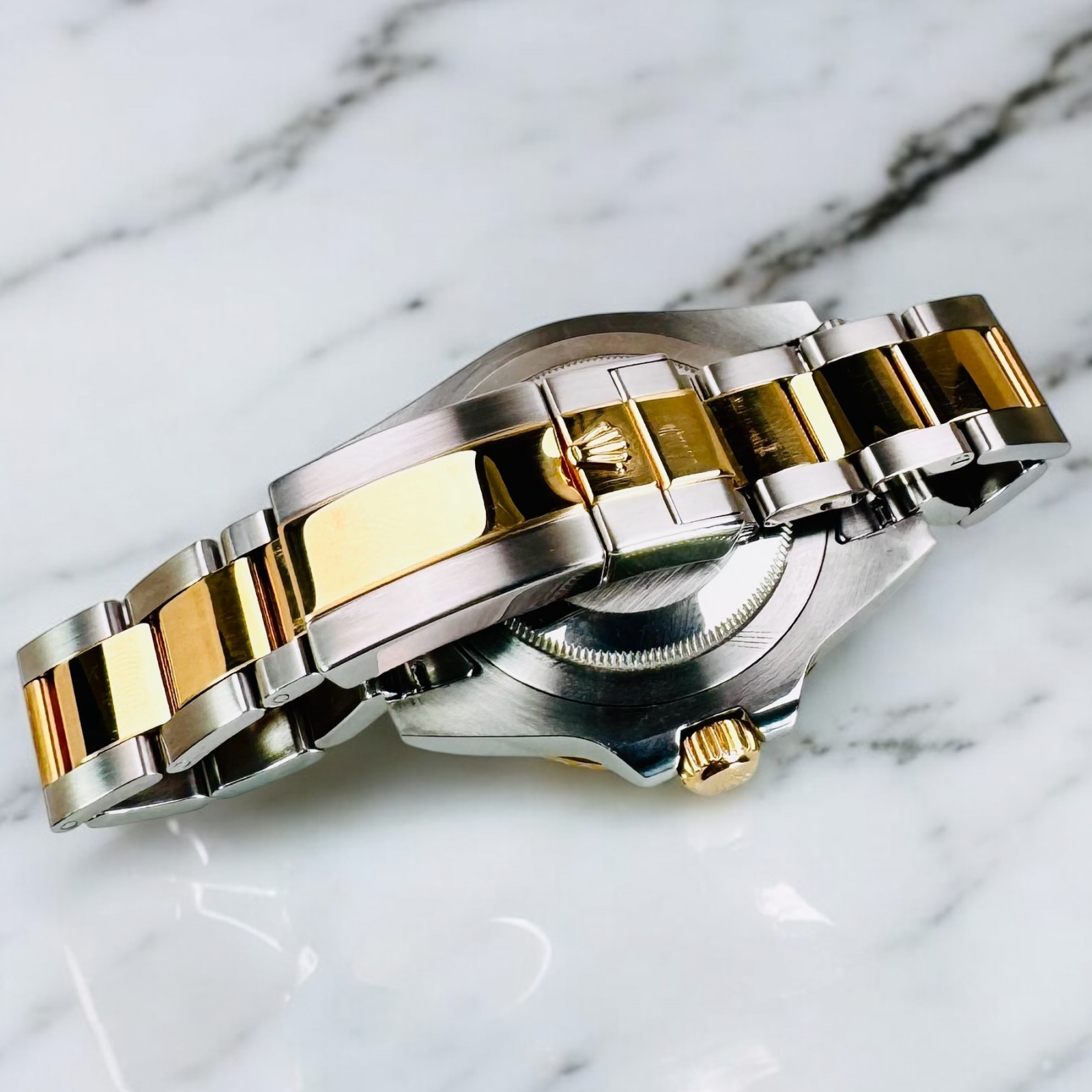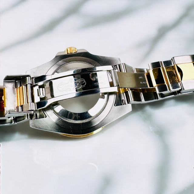 Enveloping your wrist in a snug embrace is the striking Oyster bracelet, renowned for its iconic blend of sturdy stainless steel and plush Gold. The fusion of these materials creates an irresistible allure, enhancing the watch's splendor whilst promising comfort in wearability throughout the day.