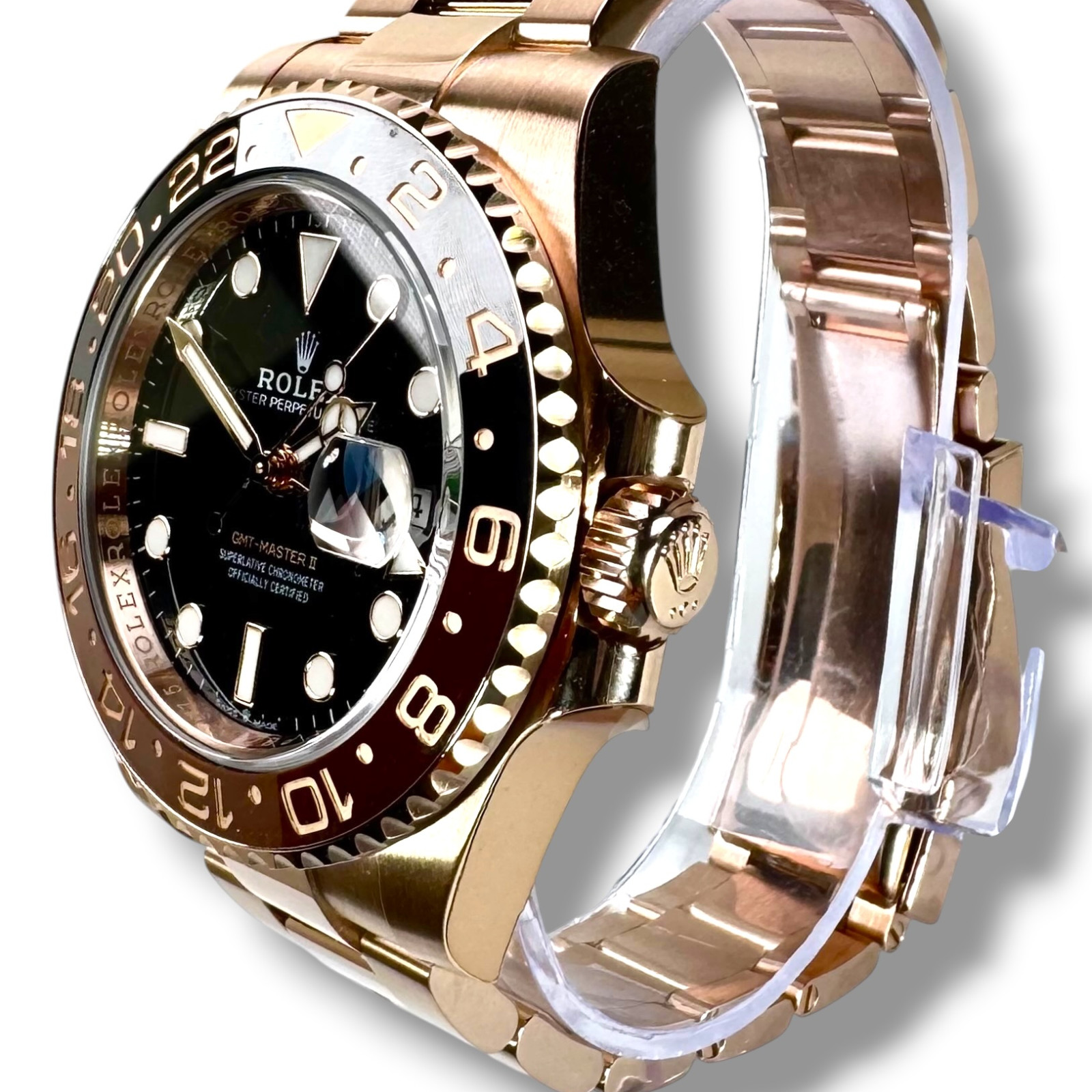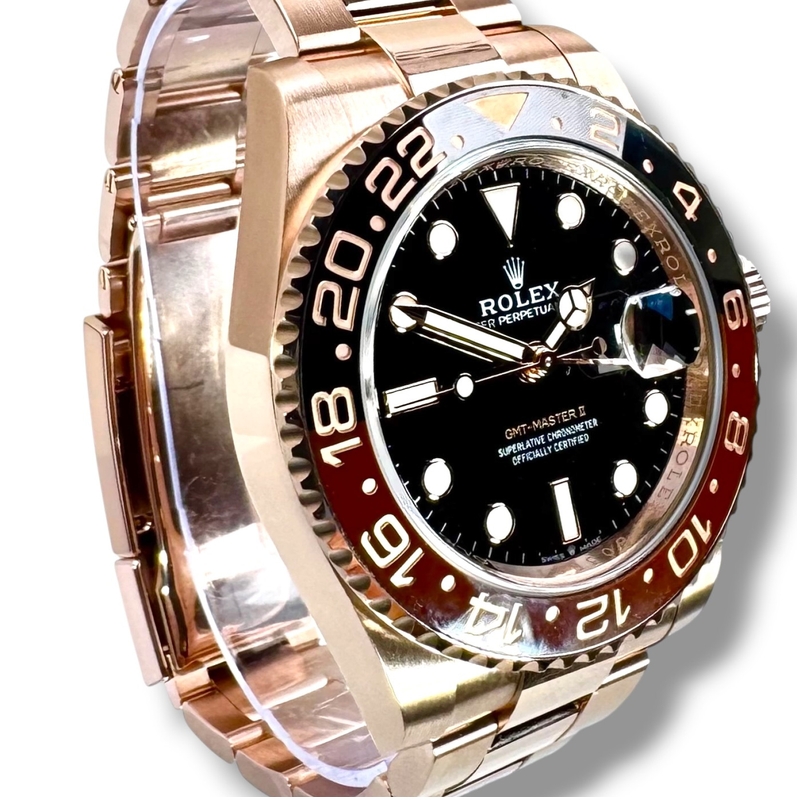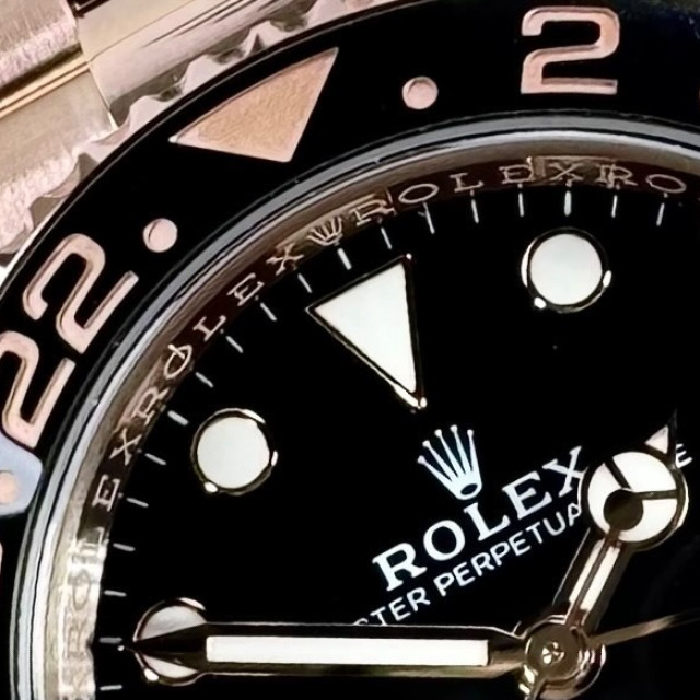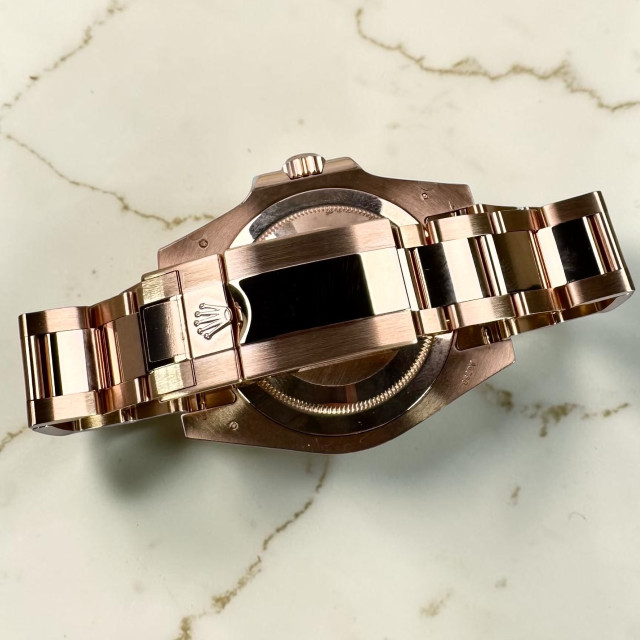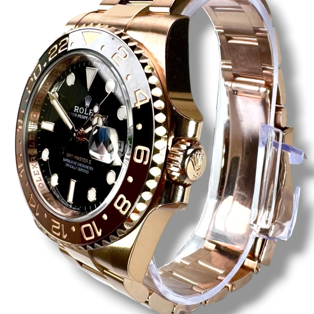 | Bezel: | 18 kt Everose gold, Two-colour brown and black Cerachrom insert in ceramic, moulded numerals and graduations, Bidirectional rotatable 24-hour graduated bezel. |