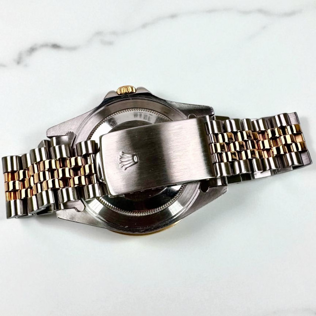 Complementing the already rich sophistication embodied by the watch is the newer style Steel & Gold Jubilee bracelet. A classic emblem of Rolex's unparalleled craftsmanship, this bracelet has been intricately created with a harmony of steel and gold, ensuring a balanced association of durability and luxury.