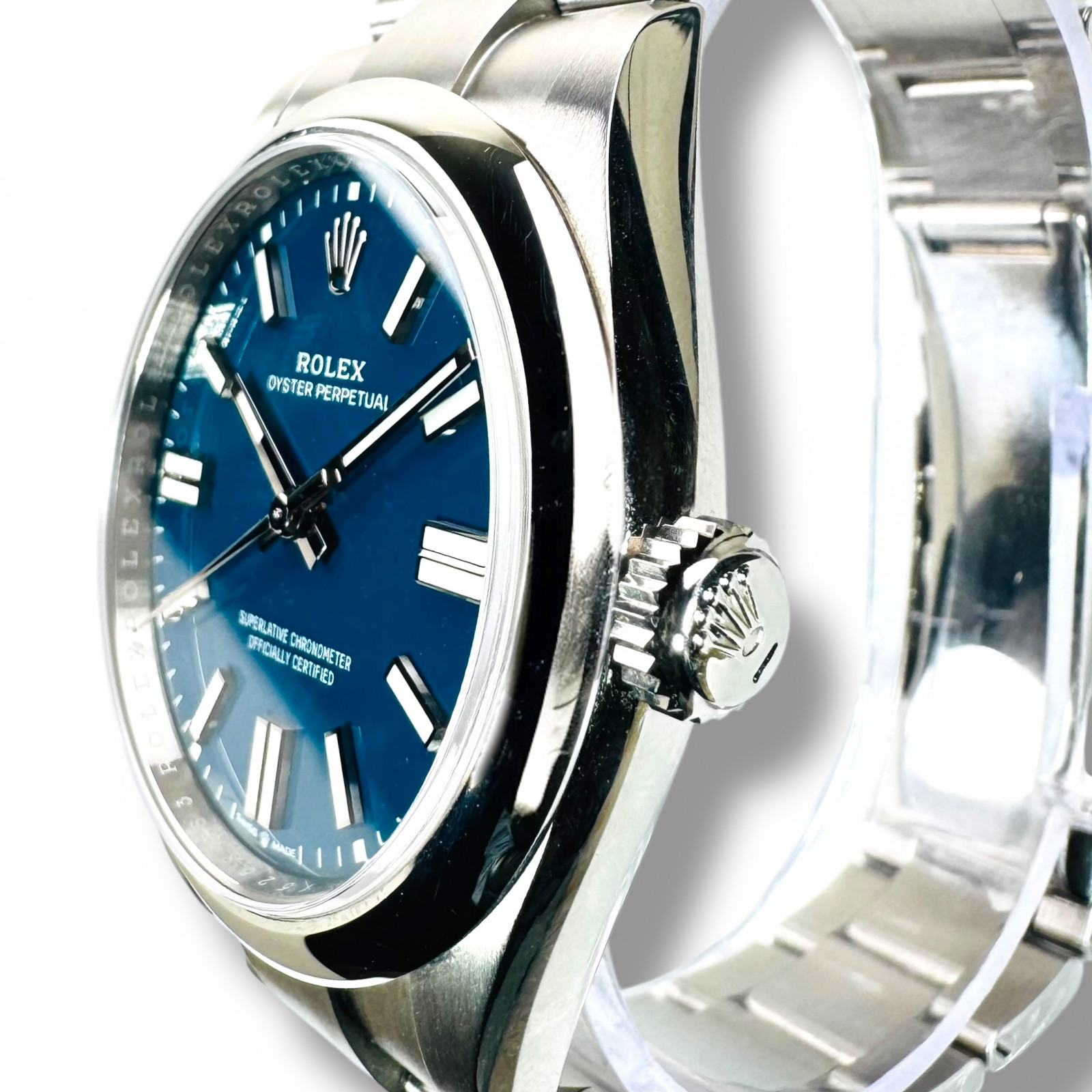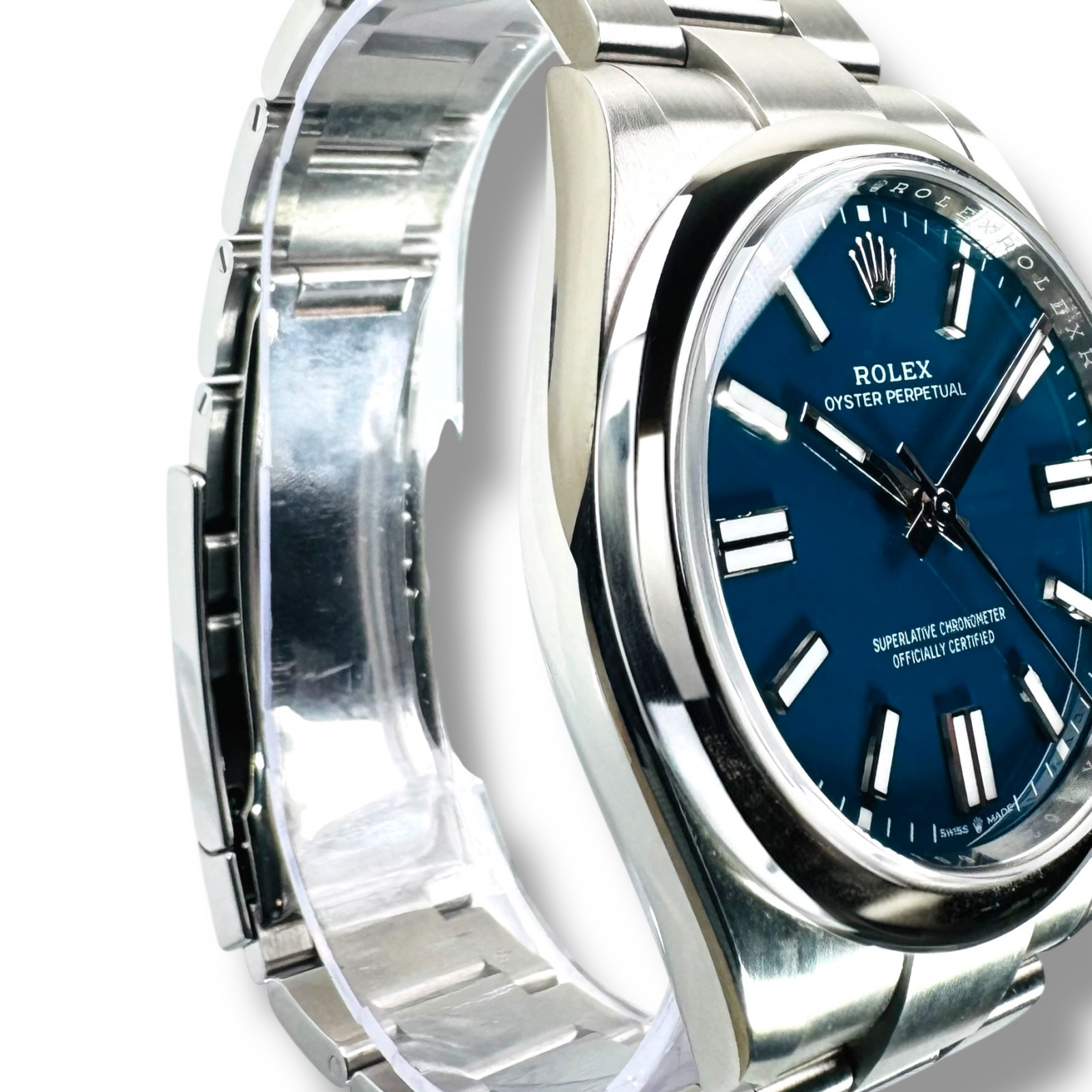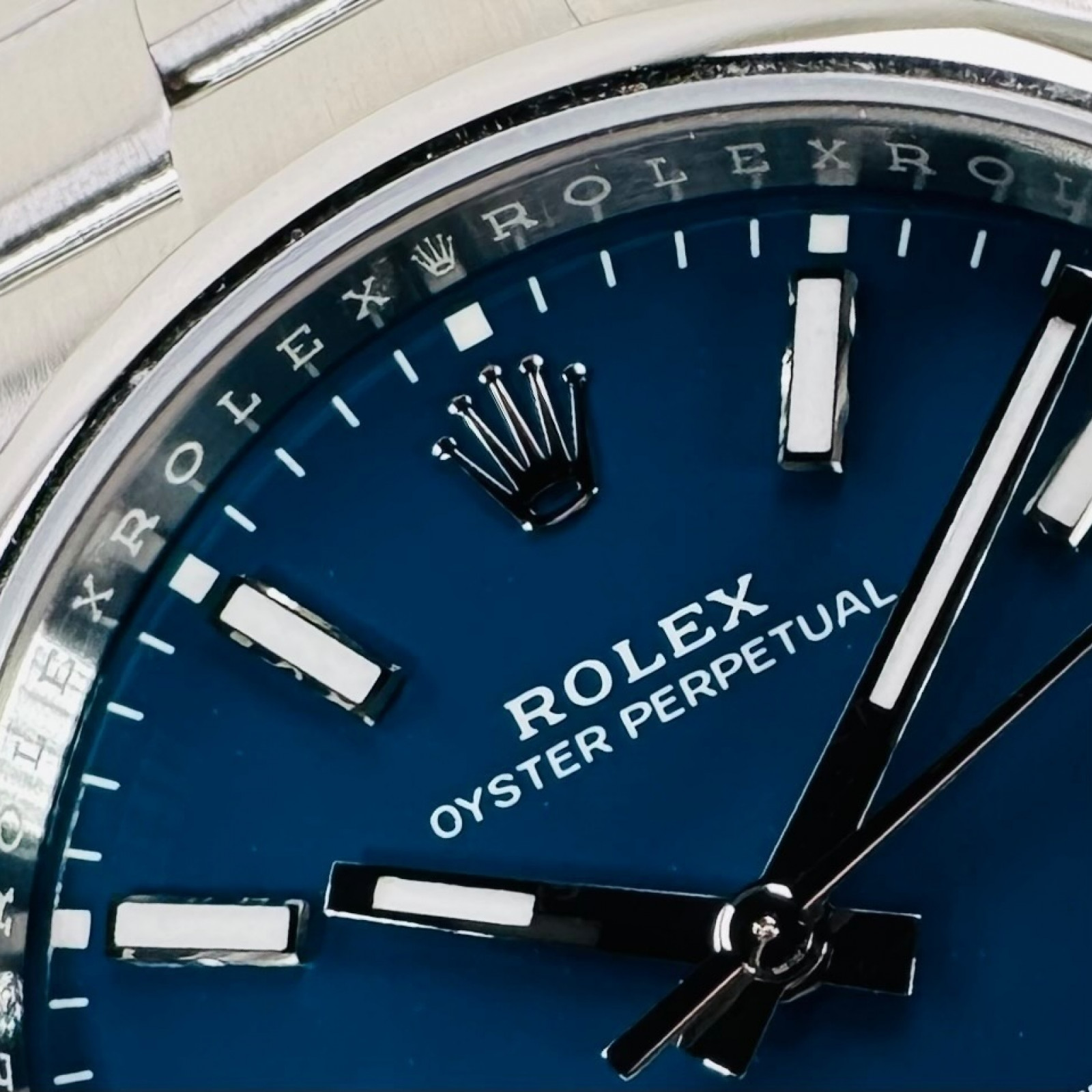 Unveil an unmatched style statement with the exemplary Rolex Oyster Perpetual 134300. This enticing timepiece, brand new as of 2025, encapsulates the timeless elegance of Rolex with its striking blue dial meticulously set on an oyster bracelet. It's an embodiment of the brand's renowned precision craftsmanship and aesthetic opulence.