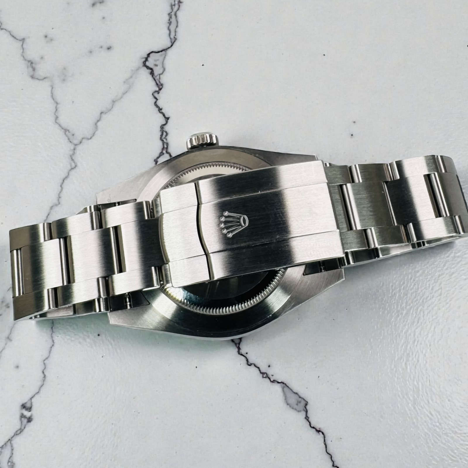 This model sports the classic Rolex Oyster bracelet, revered for its durability and comfort. The bracelet is made from oyster steel and is equipped with an Oysterclasp, ensuring your wristwatch always stays securely on your wrist. The bracelet's easy link extension system offers convenient adjustment, providing the wearer with supreme comfort and adaptability in any condition.