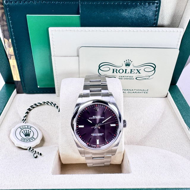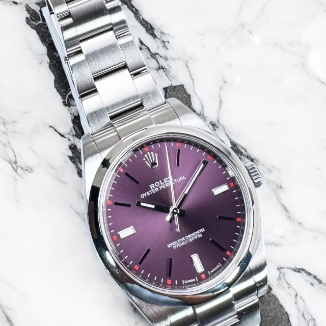 Explore our collection of the renowned Oyster Perpetual, a timeless piece of luxury that pushes boundaries without sacrificing style. This iconic collection features a 39 mm large face Oyster Perpetual, an exquisite watch that perfectly marries form and function. With a minimalistic yet bold design and legendary durability, the 39 mm Oyster Perpetual is remarkably versatile and can be worn on any occasion. Its large face ensures high visibility, while the Oyster case offers significant protection for the elaborate mechanisms within.