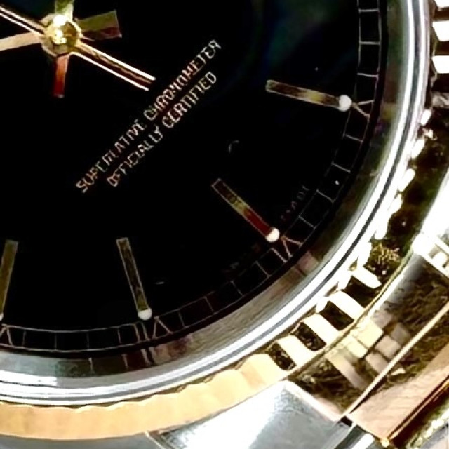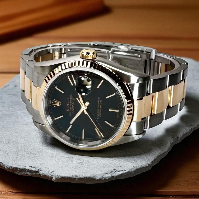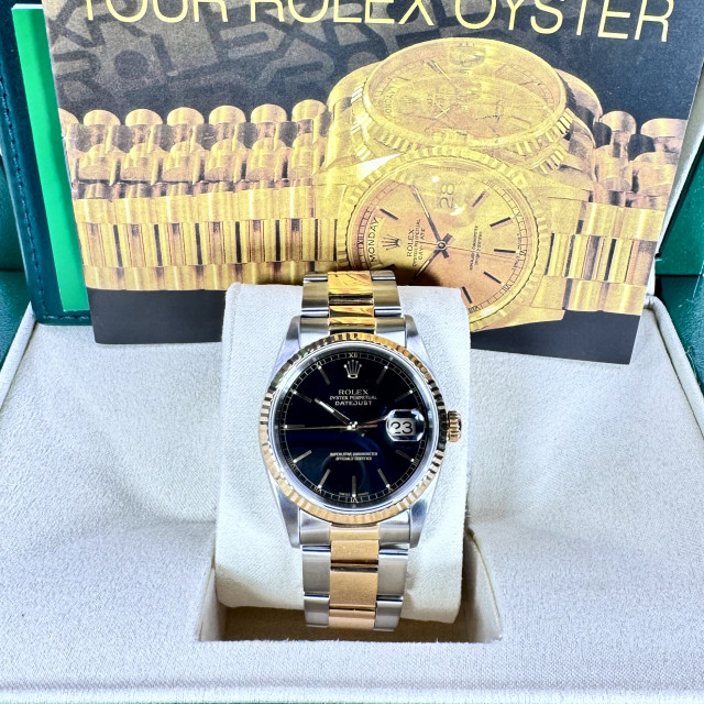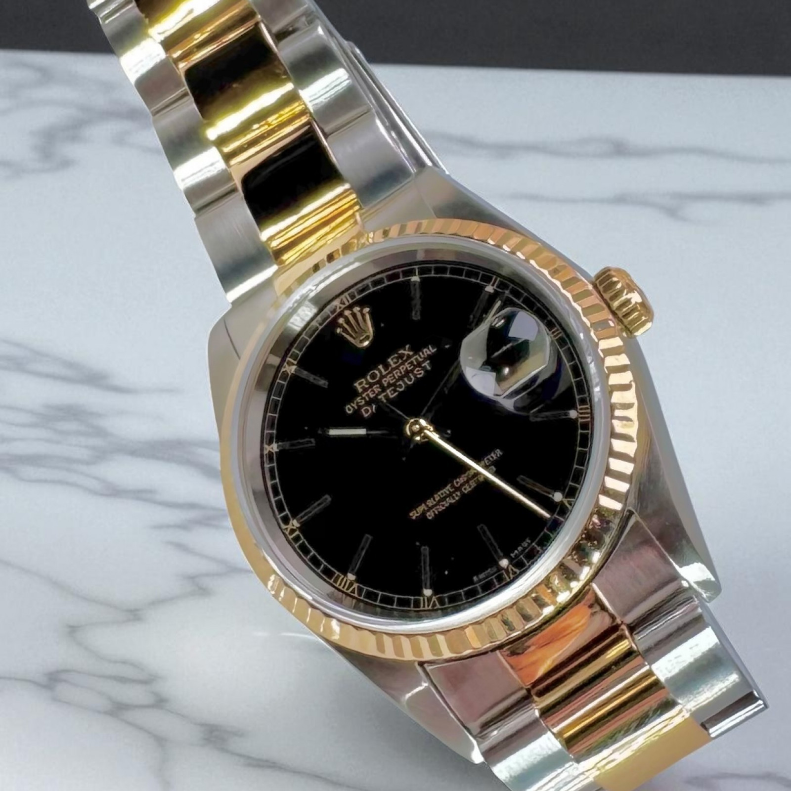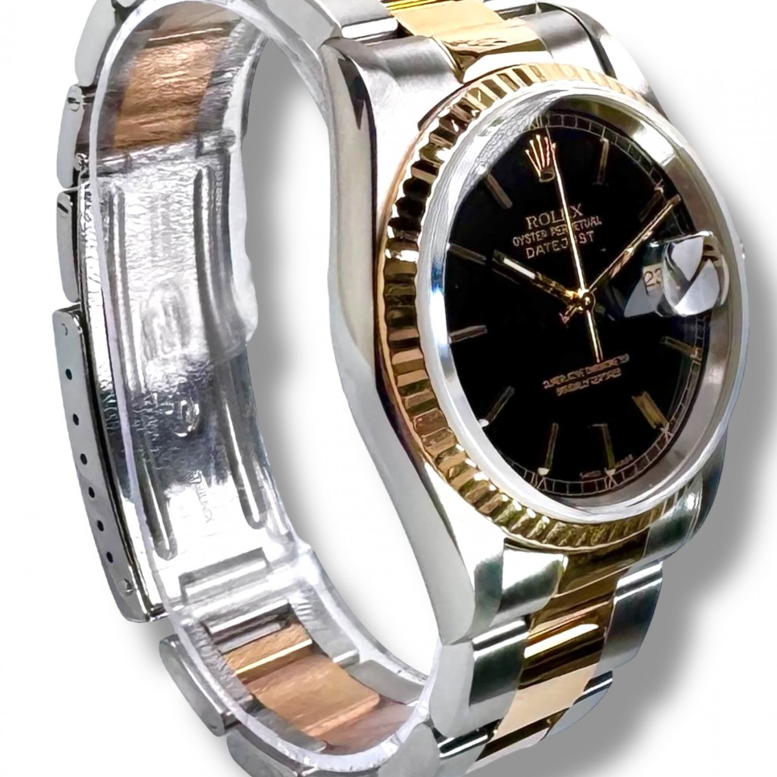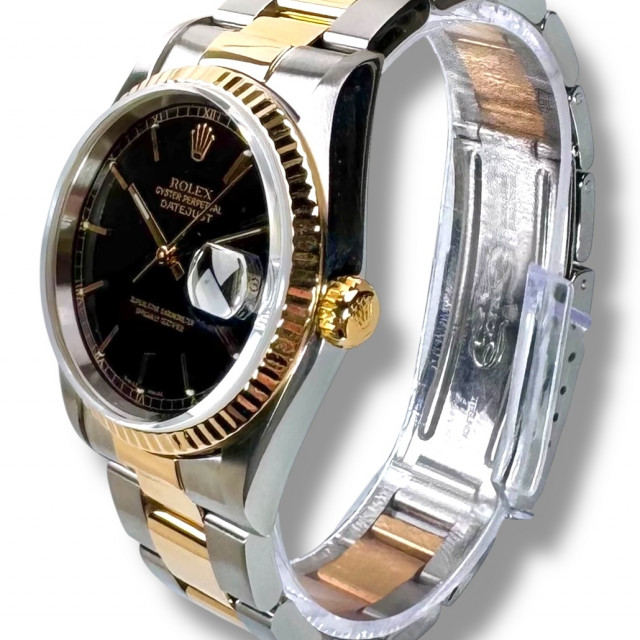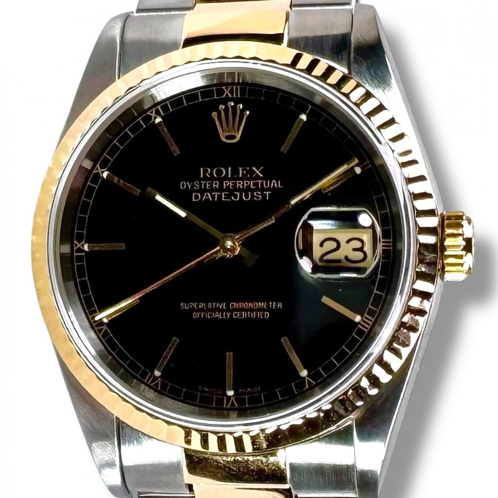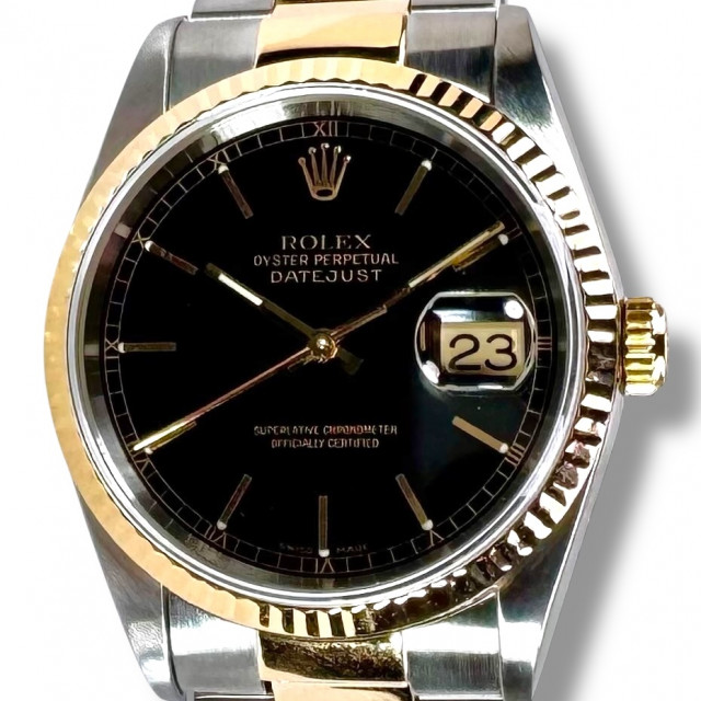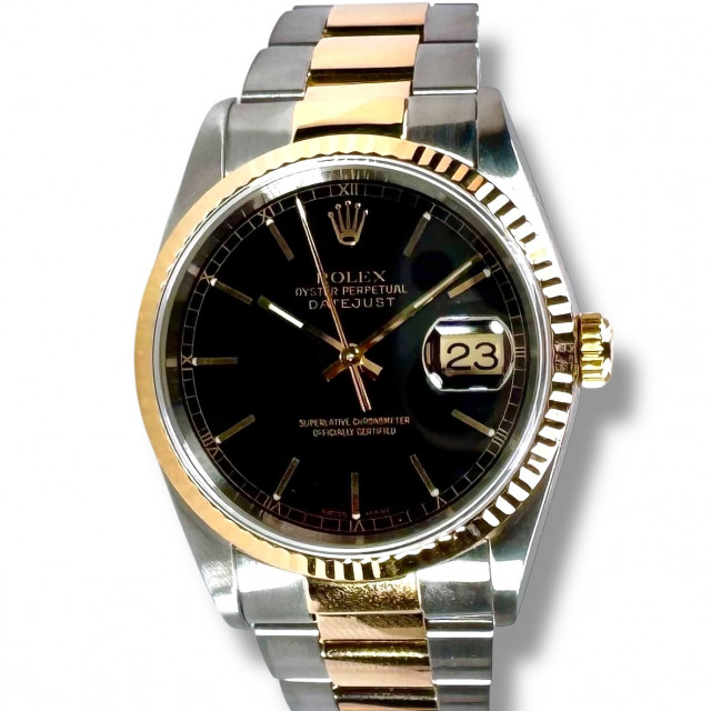 Rolex 16203 Yellow Gold & Steel on Oyster, Smooth Bezel Black with Gold Index