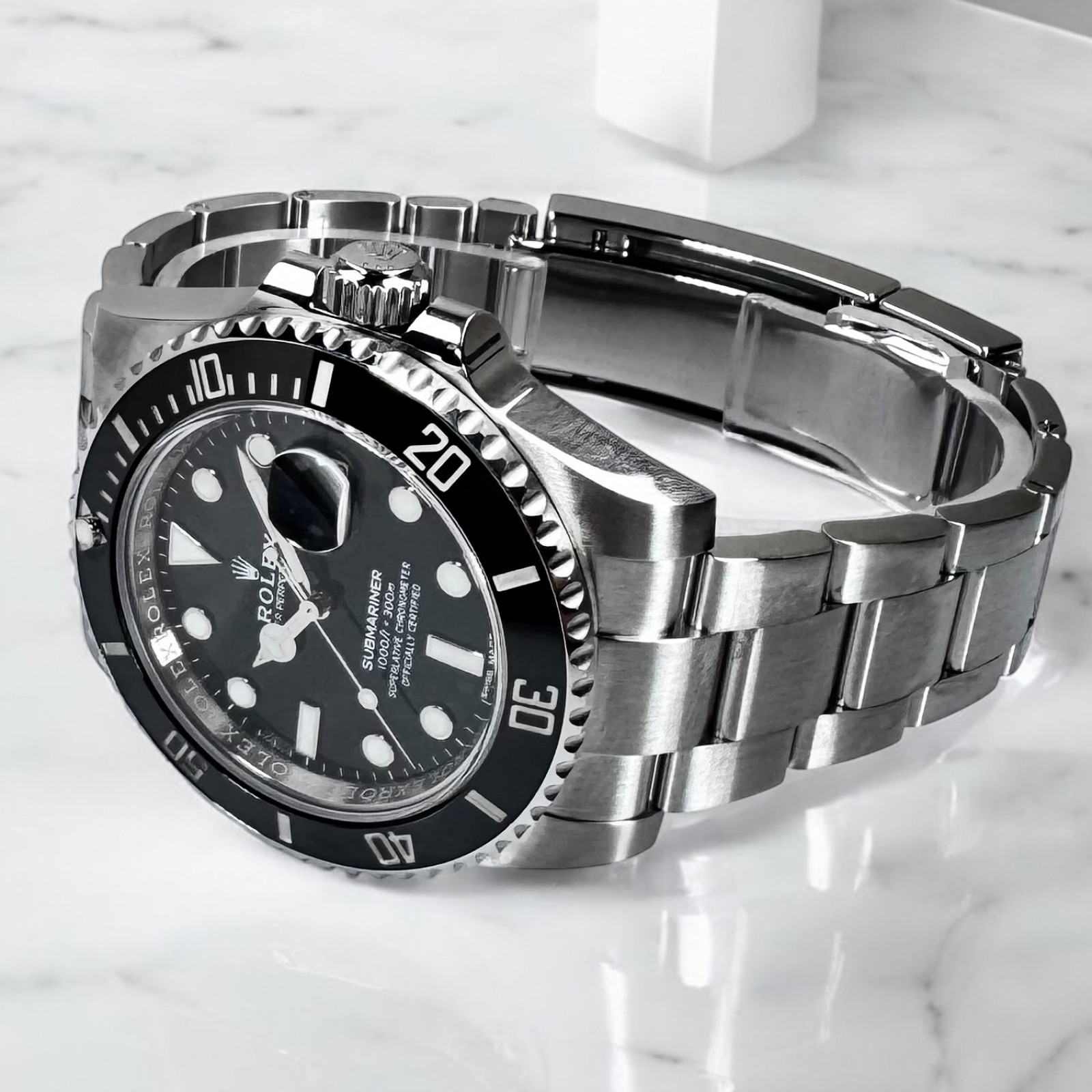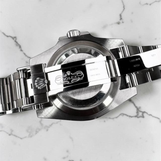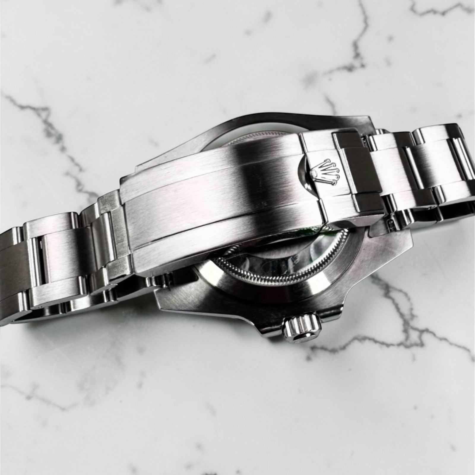 The Rolex Submariner 116610 goes a step beyond providing mere water resistance. Impeccably crafted, the watch is designed to endure the intense pressure encountered during deep-sea diving, up to an astonishing depth of 1000 ft. This makes the watch an indispensable companion for underwater explorers and diving enthusiasts. The indomitable character of this timepiece is further exemplified by the iconic Rolex Oyster bracelet. Aesthetically in harmony with the watch's robust appeal, this bracelet promises unwavering security on the wearer's wrist.