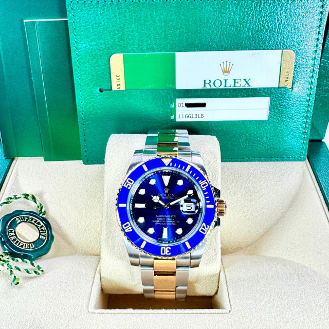 Experience unwavering magnificence and meticulous precision with the Rolex Submarian 116613 model, an indispensable accessory that exudes luxury and commands immediate attention with its captivating deep blue shade. Arriving to you in an impeccable, brand new condition, this awe-inspiring work of art reflects a marriage that is as eternal as it is lavish. With a breathtaking amalgamation of 18-ct Gold and Stainless Steel, it puts forth a tangible display of unmatched aesthetics and superior craftsmanship, two elements for which Rolex has been universally praised for more than a century.