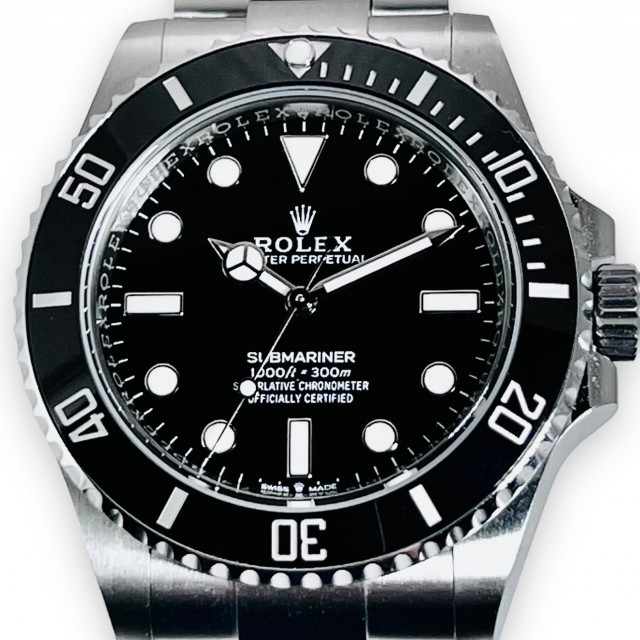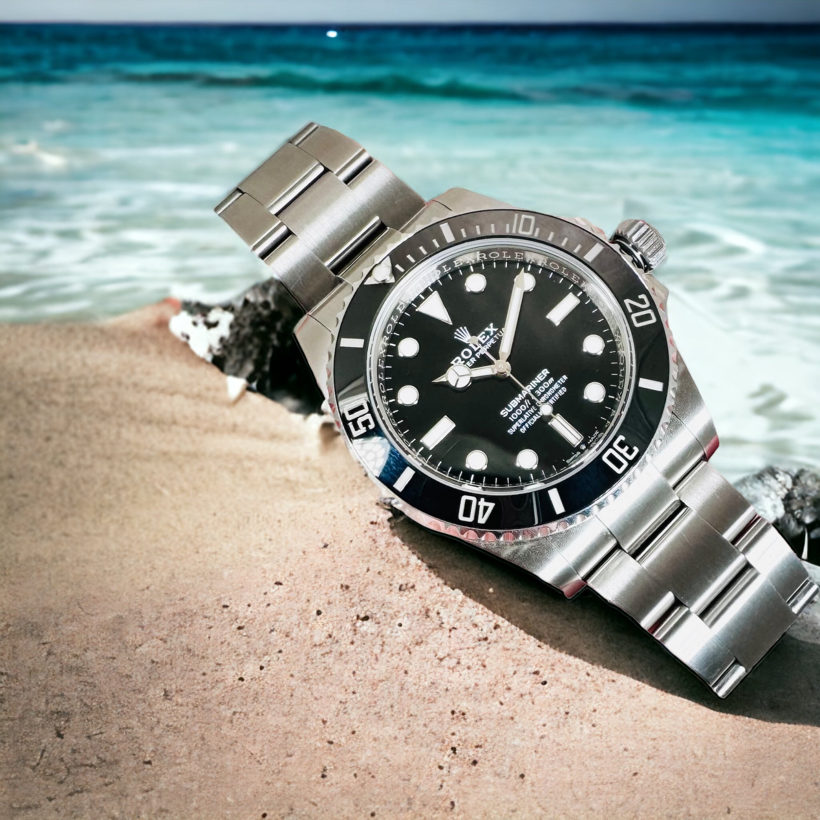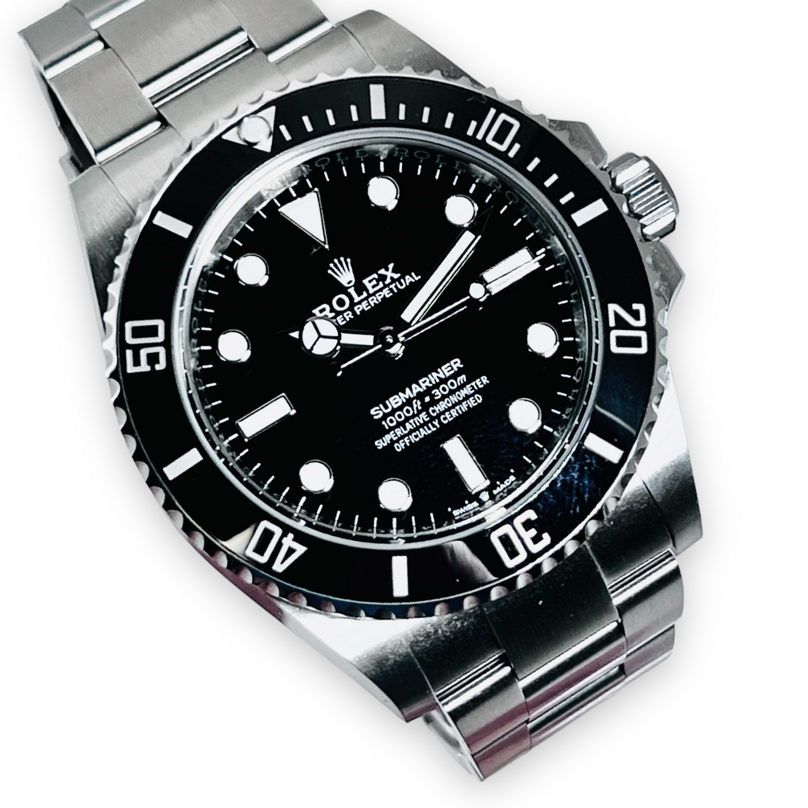 Behold, the supreme Rolex Submariner Non-Date Watch, Model 124060, presented in an utterly splendid mint condition. This timepiece radiates an agelong beauty and timeless appeal that makes it a luxurious staple for every watch aficionado. With this remarkable model, you are experiencing the flawless precision and refined craftsmanship that has established Rolex as a globally celebrated and revered luxury watch icon.
