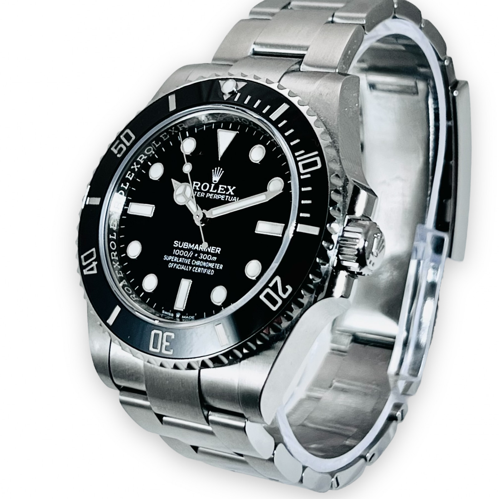 In conclusion, the Rolex Submariner Non-Date Watch Model 124060, presented in impeccable mint condition, surpasses being just a time telling accessory. It personifies elegance, robustness, meticulous engineering, and authenticity. This rare combination of features makes it a coveted asset for serious collectors and watch enthusiasts worldwide.
