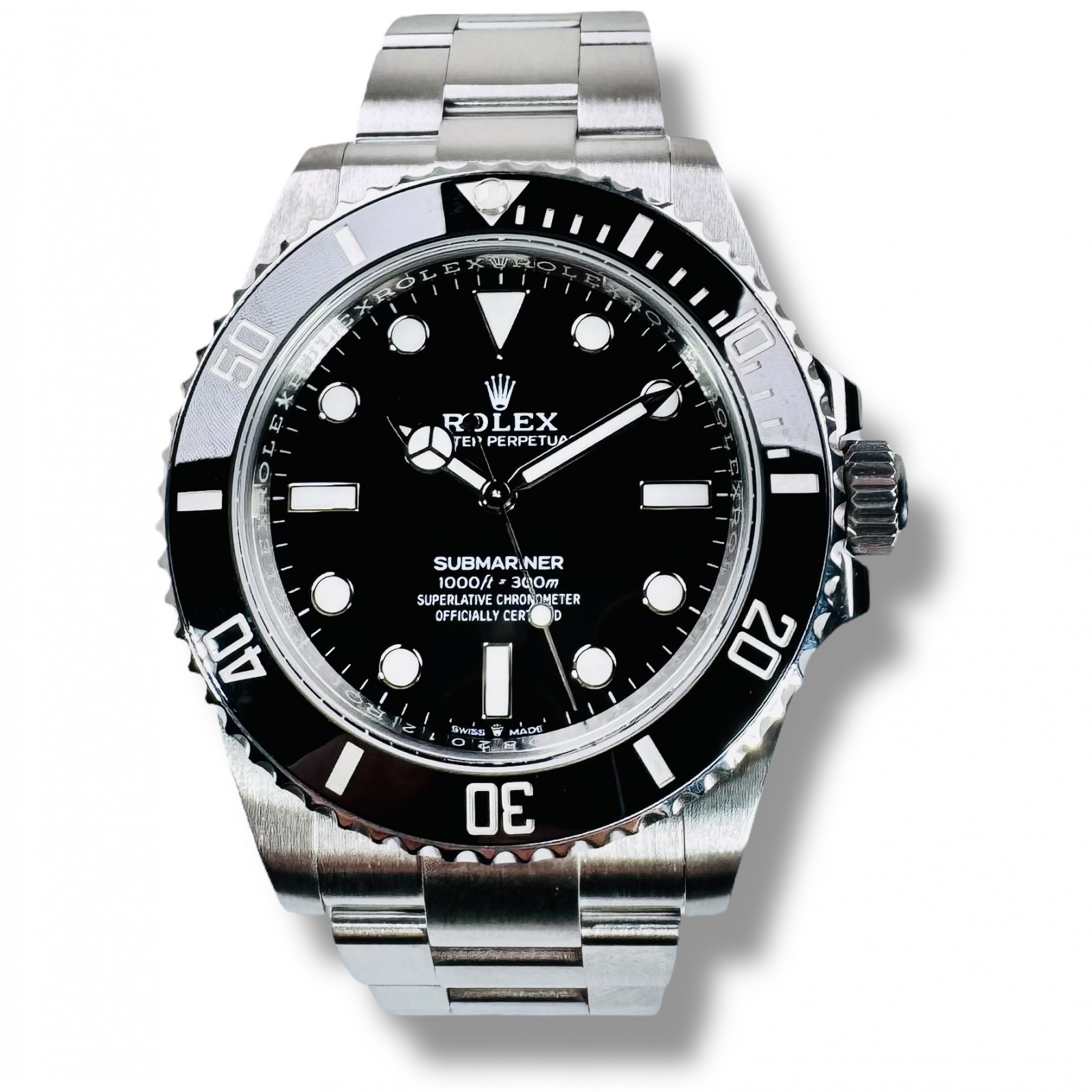 Yet, this Rolex Submariner transcends the basic connotation of being a mere chronometer. It radiates a statement of status, cultivated elegance, and unwavering reliability. The confirmation of this assertion is the prestigious Chronometer Certification, a distinguished seal of excellence that signifies the watch has successfully surpassed stringent precision standards over multiple days under varying positions and temperatures as per the Control Official Swiss Chronometer Testing Institute (COSC). As an esteemed associate of the Federation of Swiss Watch Industry’s anti-counterfeit alliance, the COSC certification further solidifies faith in authenticity, reinforcing credibility and assurance in this magnificent timepiece. Therefore, acquiring the Rolex Submariner Non-Date watch is not merely the purchase of an enchanting piece of horologic history and aesthetic allure, but essentially encapsulates the peak of Swiss watchmaking excellence on your wrist.