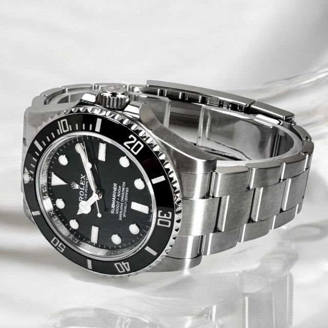 Elevating this timepiece's protective and aesthetic appeal, the Rolex Submariner Non-Date proudly parades a stylish stainless steel oyster bracelet. Its firm yet comfortable emplacement on the wrist can be credited to the strategic design of a flip-lock clasp—a crucial feature engineered to ensure the watch stays anchored at your wrist, providing a constant, faithful accompaniment.