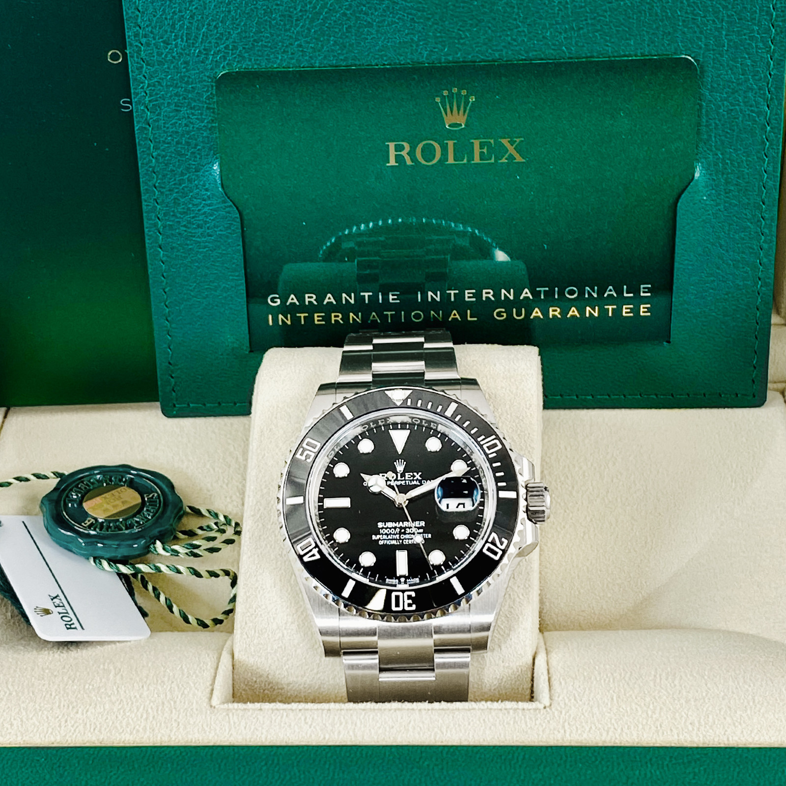 We present to you the remarkable and superior Rolex Submariner, Model 126610, an exemplary cornerstone of refined time-keeping engineering. This piece results from a breathtaking fusion of majestic elegance with unmatched reliability, serving as the perfect embodiment of the prestigious Rolex brand ethos. This technologically advanced model, freshly unveiled in 2023, serves as a groundbreaking milestone in the illustrious world of Rolex's Submariner lineage, being the pioneering timepiece to daringly adopt an upscaled 41mm dimension. This pristine, unused wristwatch delicately encodes a story of timeless elegance and steadfast reliability within every painstakingly refined detail.