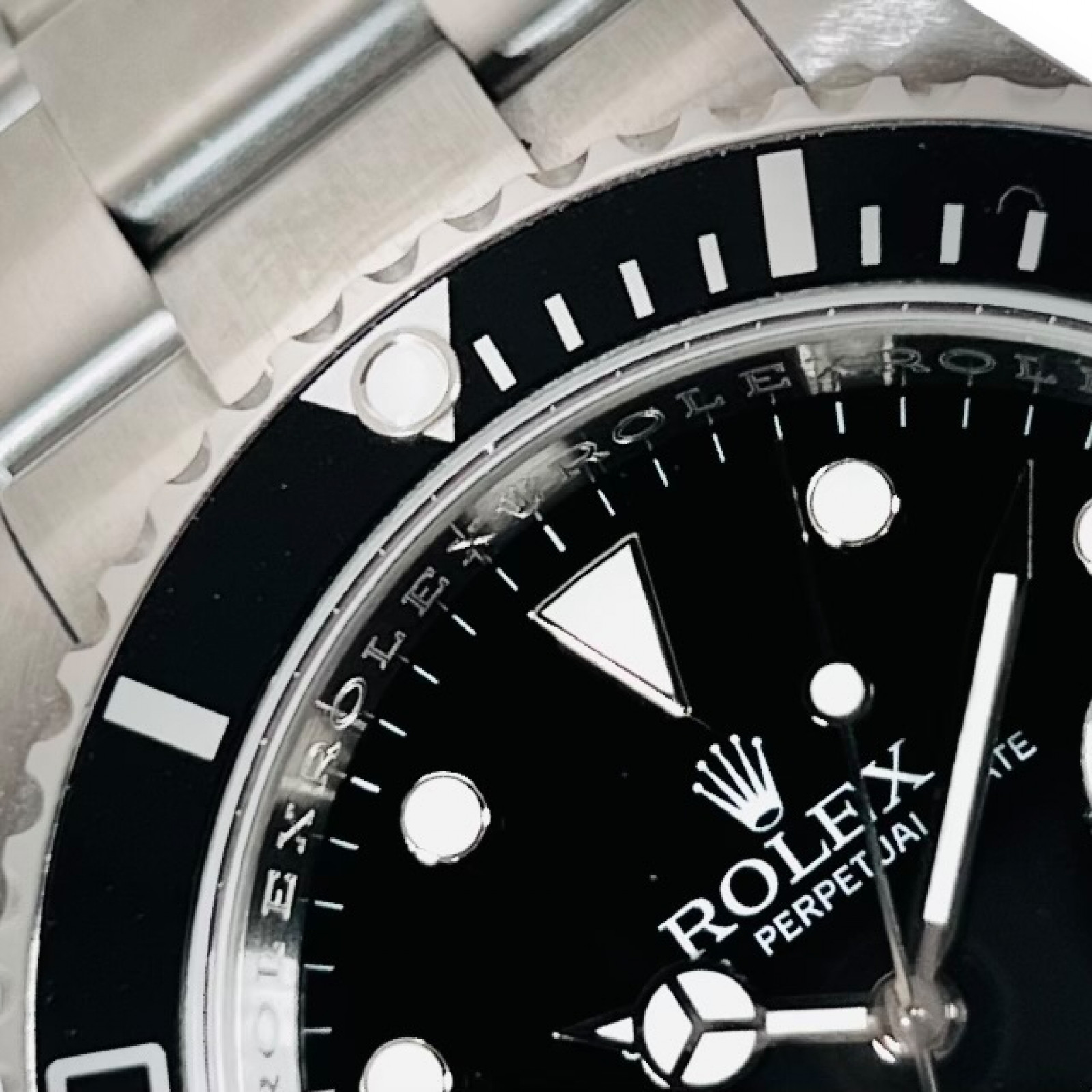 In classic Submariner fashion, this model displays a distinctly clear black dial, methodically designed to ensure effortless readability in the harshest of underwater settings. Epitomizing the wearer's discernment and style, the black dial irresistibly captivates, reflecting Rolex's unwavering commitment to meticulous craftsmanship and unrivaled design expertise.