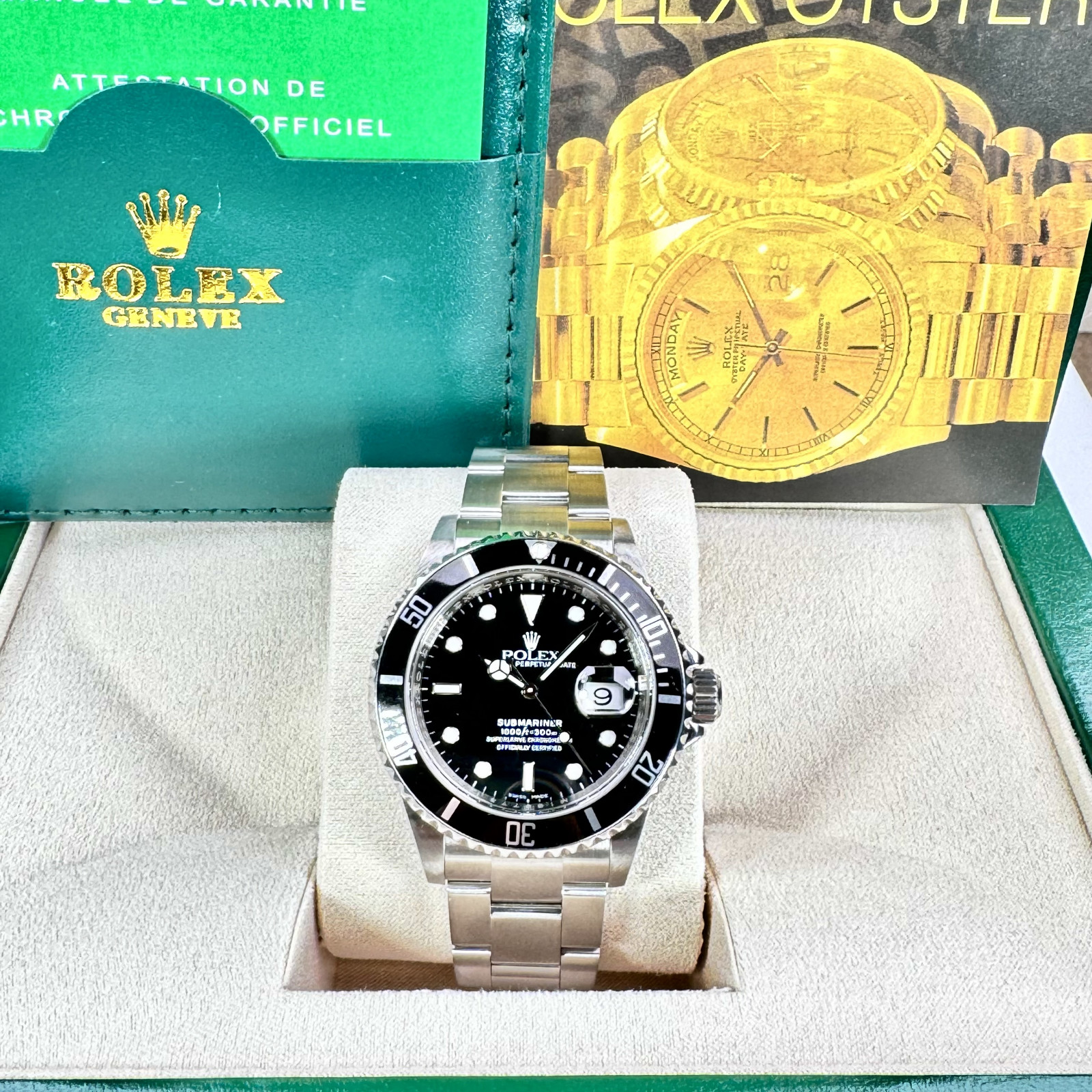 Witness the zenith of opulence and functionality with the Rolex Submariner 16610, an eternal treasure in pristine condition. This stunning timepiece is among the last impeccably crafted items in its model group, encapsulating the refined Swiss watchmaking heritage and the true Rolex ethos of meticulous precision and lasting resilience. Exquisitely etched on its rehaut, this watch stands as a testament to Rolex's attention to detail and exceptional craftsmanship, setting it apart from all other timepieces.