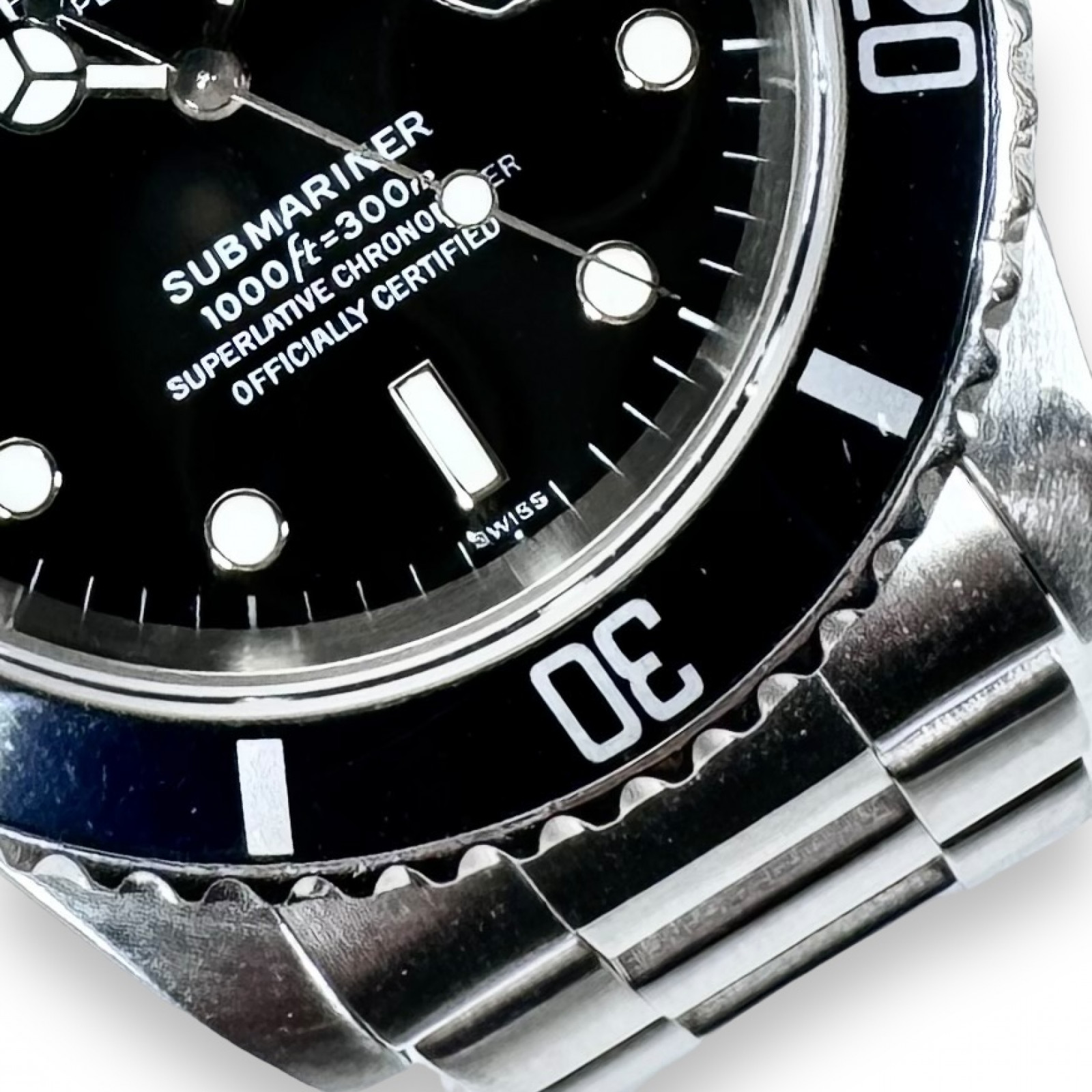 Allow us to introduce an absolute timeless masterpiece, the Rolex Submariner, model 16610, a precise embodiment of the watchmaking prowess of Rolex dating back to the production year of 1999. This unparalleled piece of Swiss craftsmanship shiningly stands as a significant milestone in the glittering chronicles of Rolex's illustrious history. What sets this watch apart is the distinguished "single Swiss" black dial that enhances its ornate elegance and silently communicates a profound sense of sophistication and luxury with every passing glance.