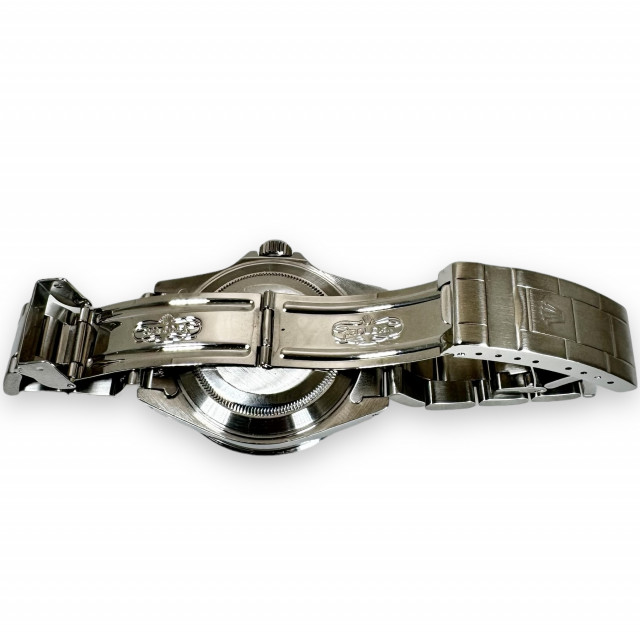 The black dial, lovingly referred to as the 'Single Swiss,' owing to the one-line 'SWISS' inscription below the 6 o'clock hour marker, makes a delightful visual treat. It sketches a bold contrast against the luminous hour markers and the signature Mercedes hands. This particular variant of the dial only saw a limited production period in 1999, making it a coveted piece amongst Rolex enthusiasts and sophisticated horological collectors across the globe.