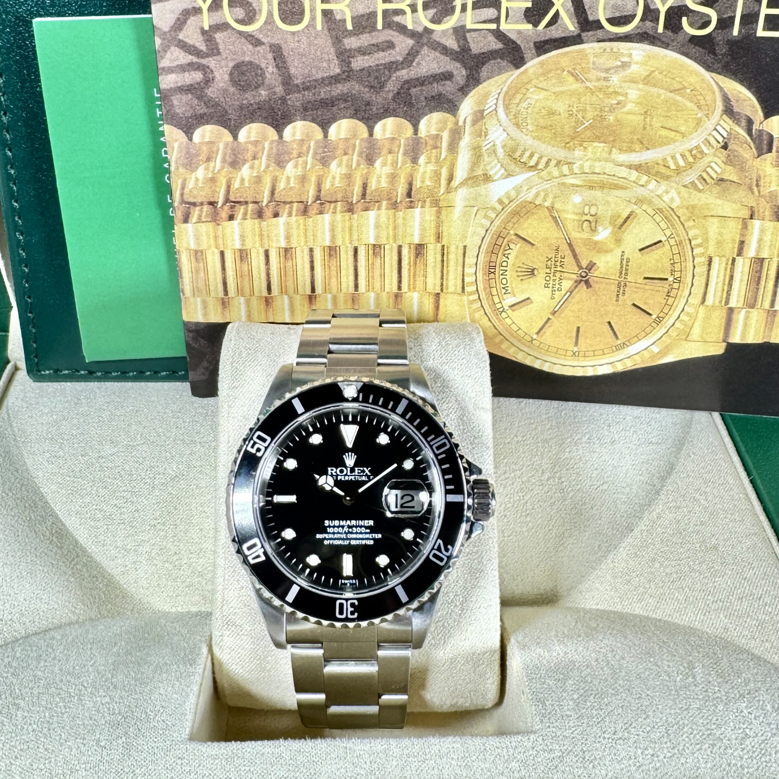 An added aspect of assurance is the original Rolex documentation that comes with this Submariner 16610 model. It offers an unquestionable testament to the watch's authenticity, a crucial element that not only aids in potential resale and insurance valuation, but also imparts a profound sense of peace of mind to the owner, confirming possession of a certified authentic piece from the world-class watchmakers at Rolex.