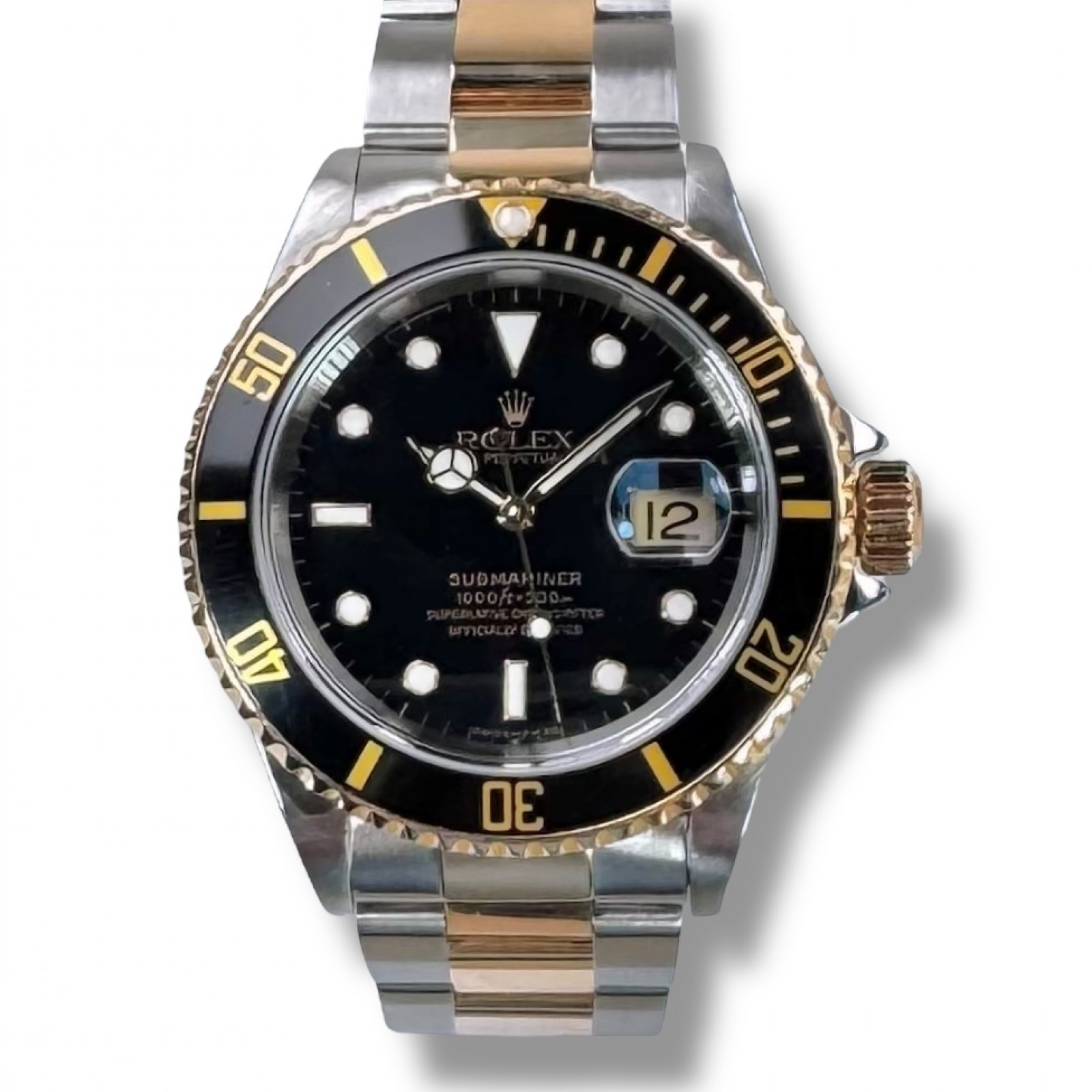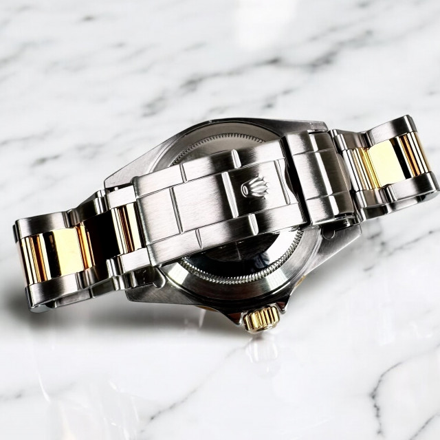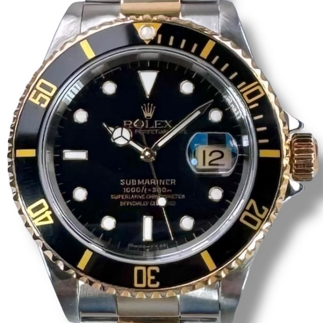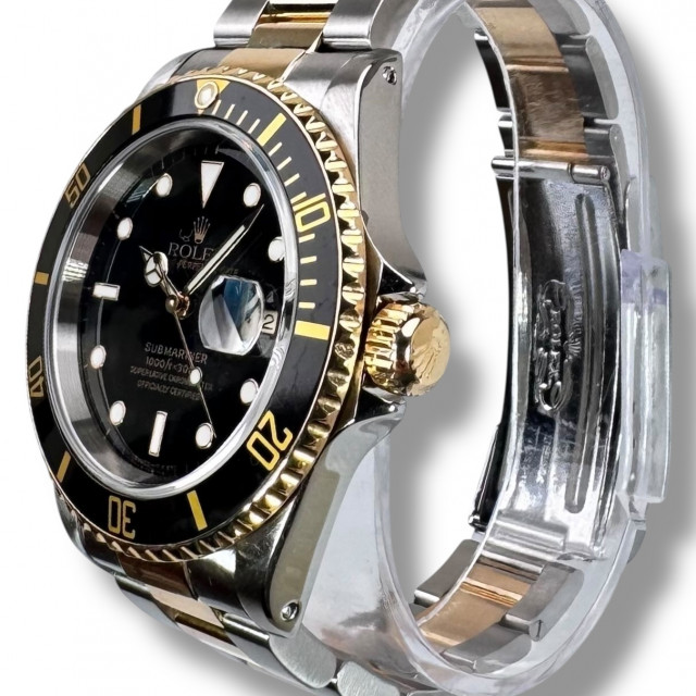 As a matter of extraordinary beauty, this Submariner model features an opulent combination of 18-karat gold and high-grade stainless steel. This luxurious amalgam amplifies both the visual allure and the overall robustness of this timeless creation. Boasting its enduring style, the watch's design is further enhanced with a finely finished black dial, which provides a beautiful and generously proportioned backdrop for the remarkable features of this singular timepiece.